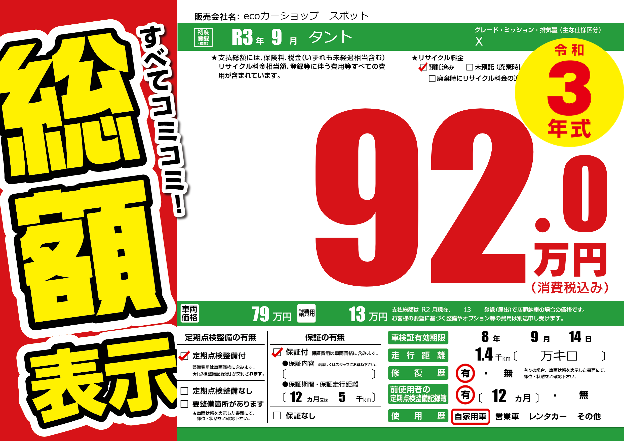 | 走行キロ | 0.1万km | 初年度登録 | R3年9月 |