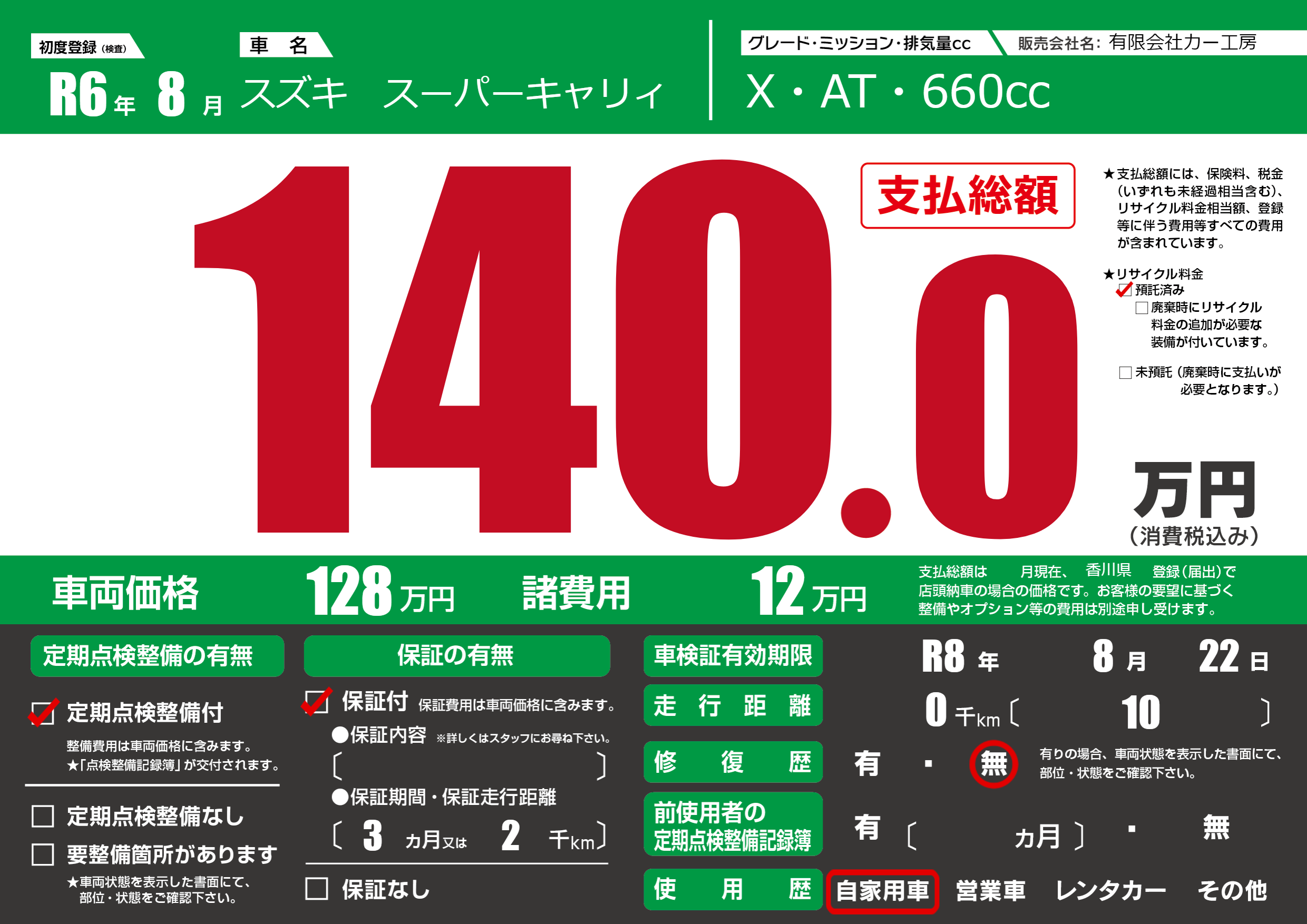 | 車検制限 | R8年 8月 22日 | ||