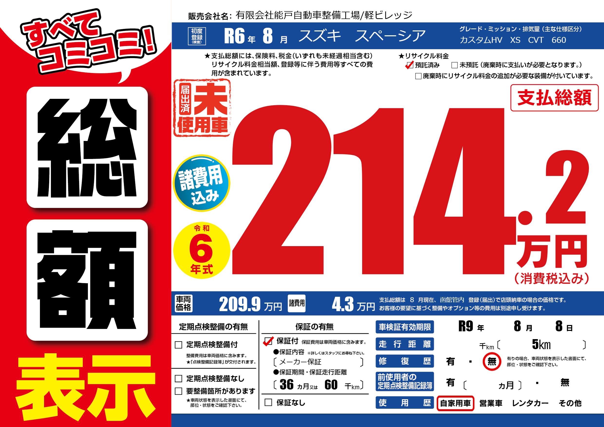 | 走行キロ | - | 初年度登録 | R6年8月 |