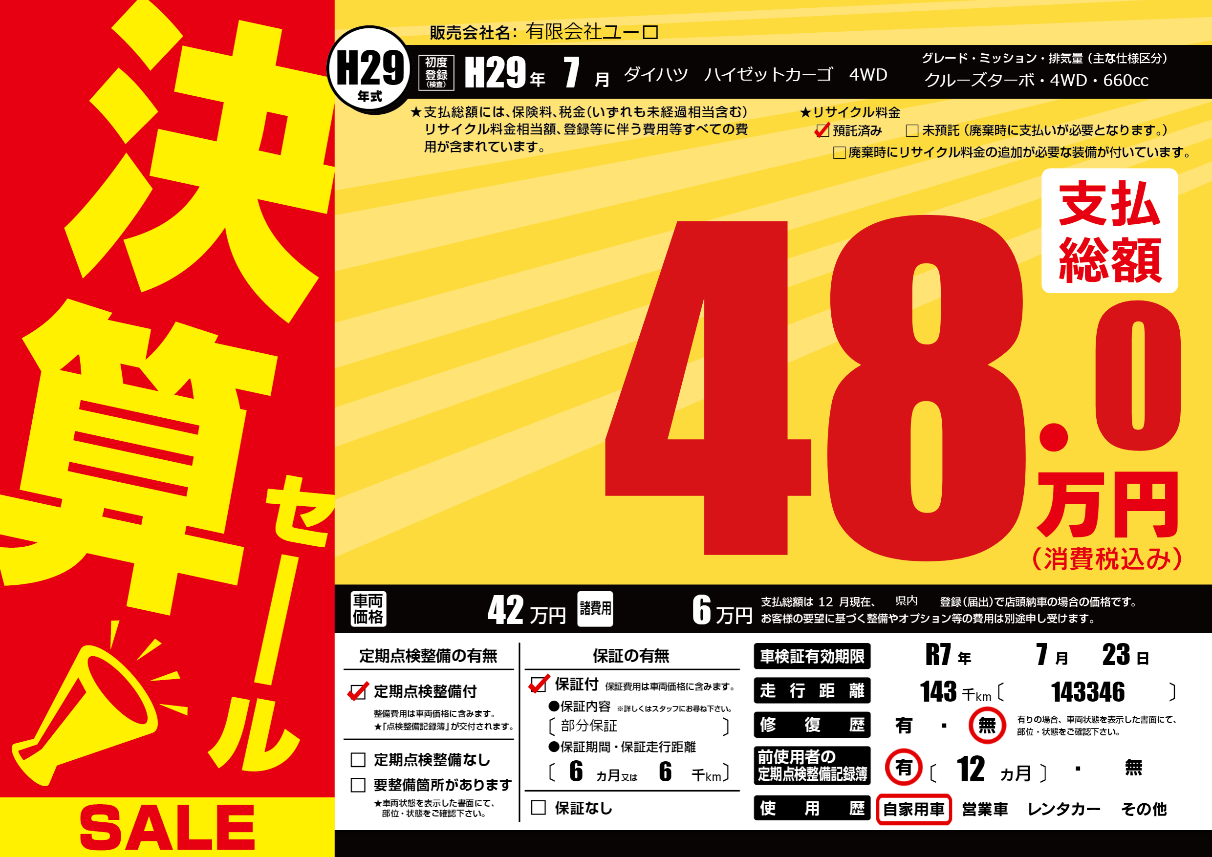 なし | 車検制限 | R7年7月23月 |
