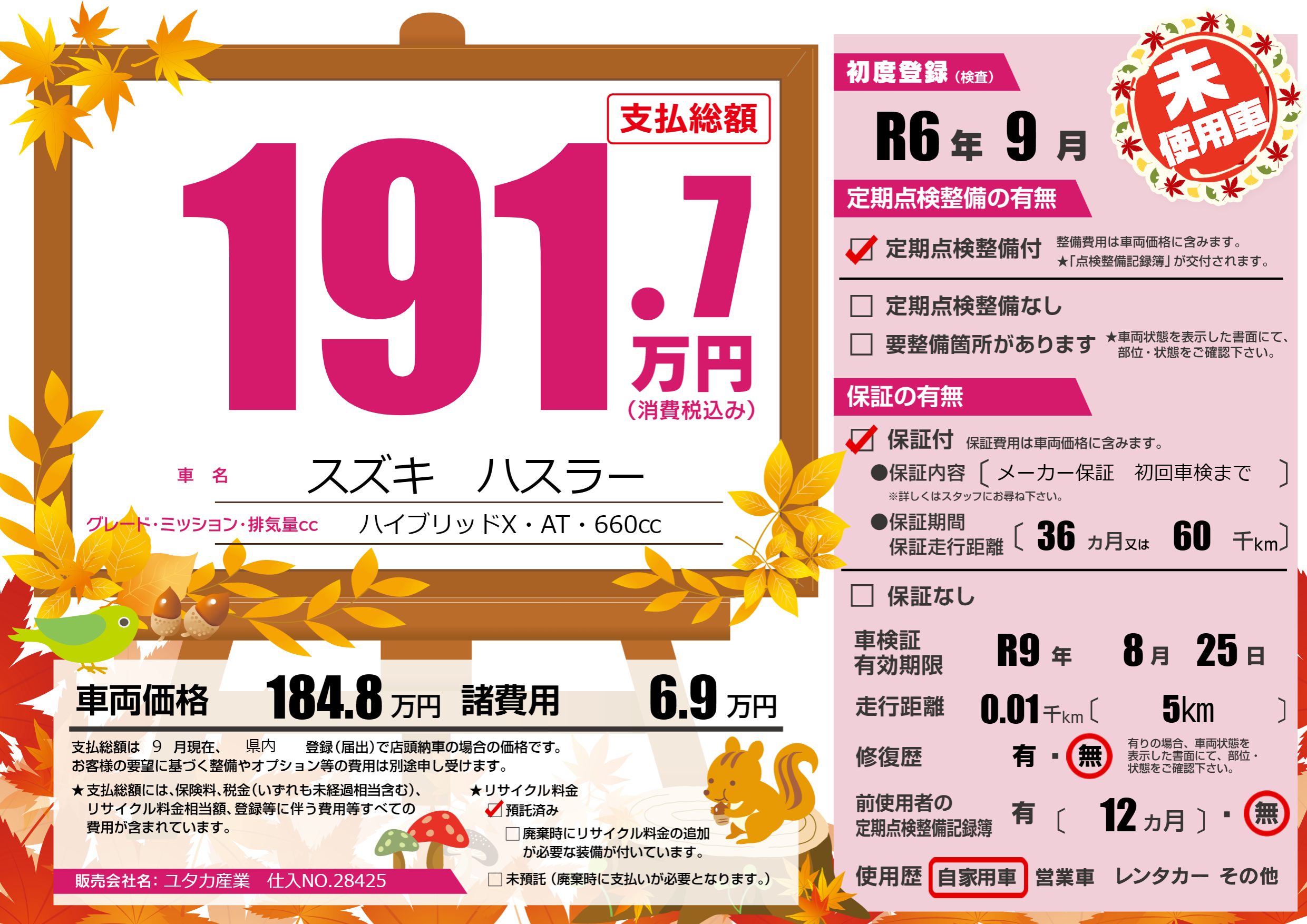 | 走行キロ | - | 初年度登録 | R6年9月 |