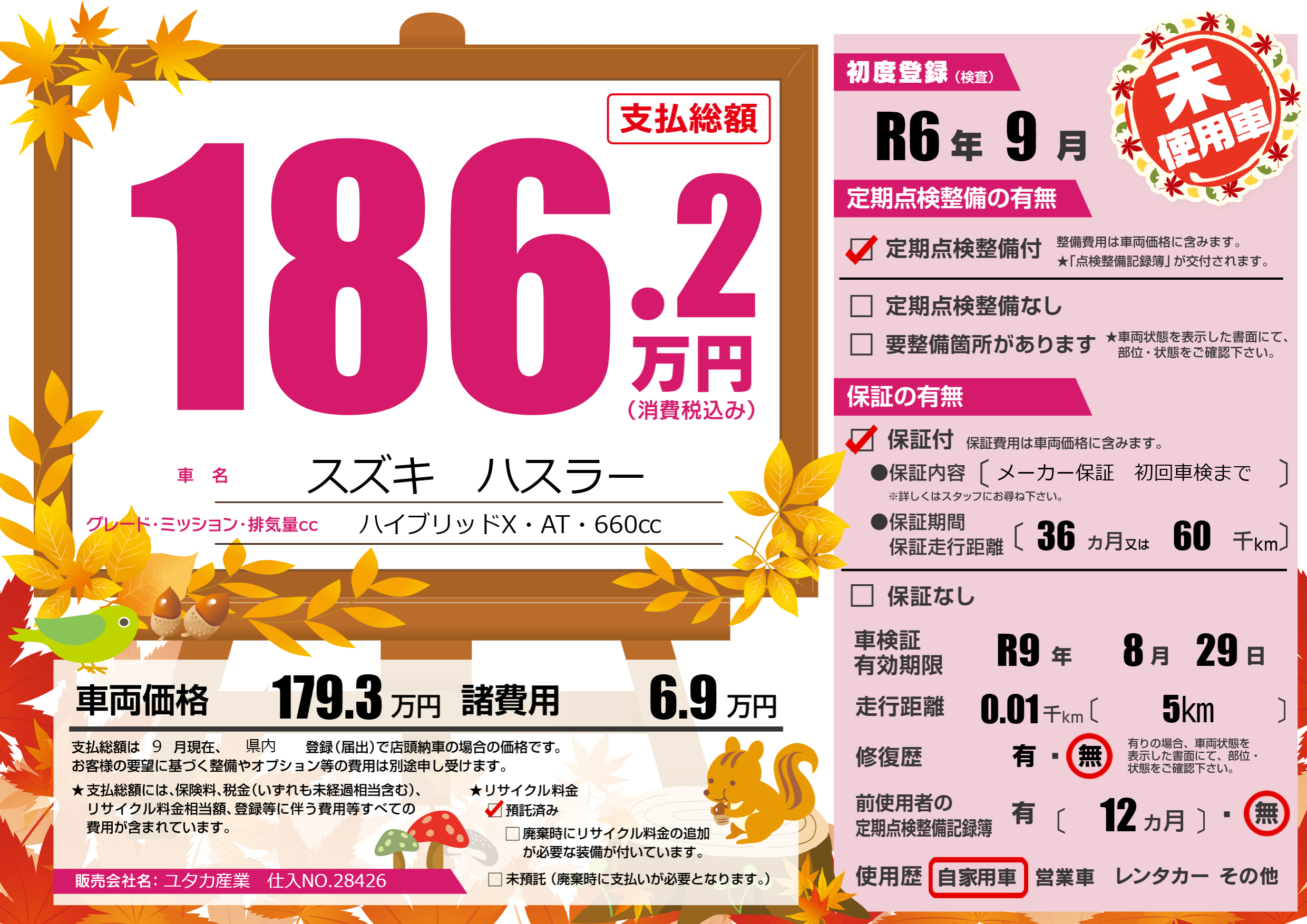 | 走行キロ | - | 初年度登録 | R6年9月 |