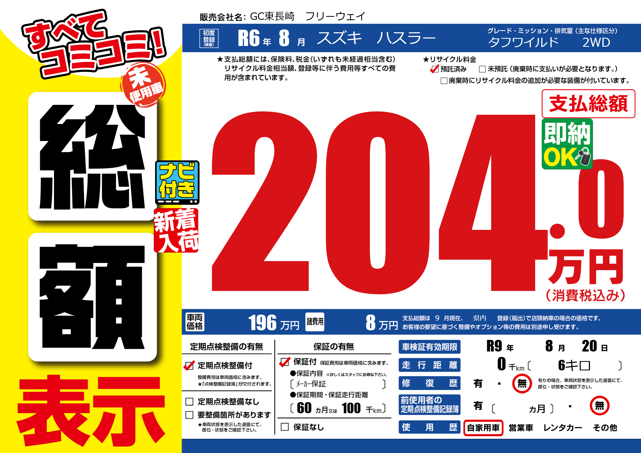 なし | 車検制限 | R9年8月20月 |