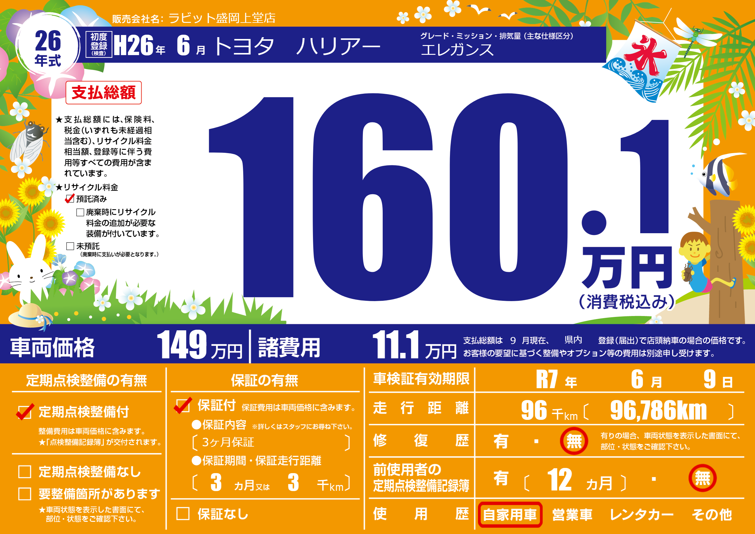 なし | 車検制限 | R7年6月9月 |
