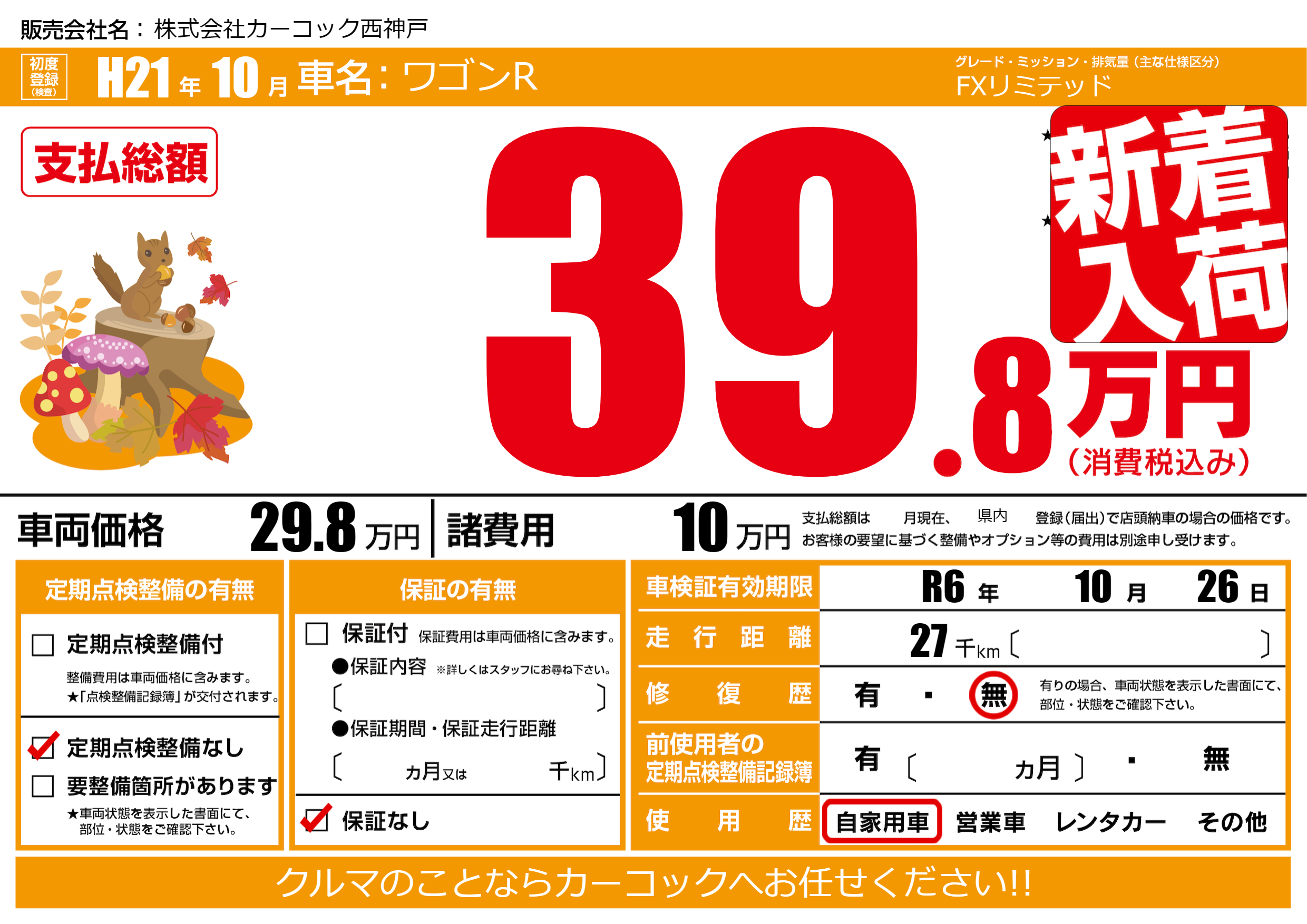 なし | 車検制限 | R6年10月26月 |