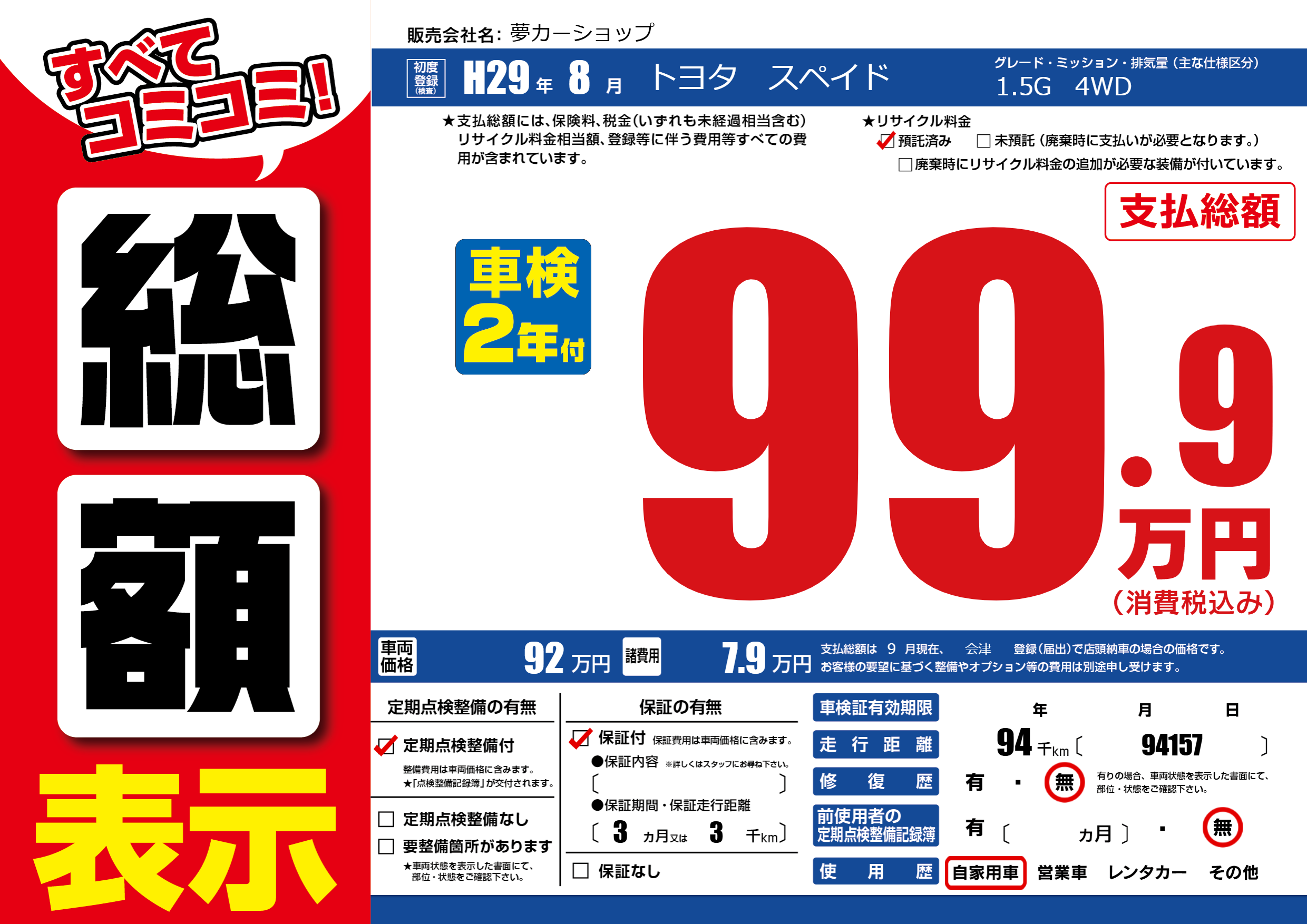 | 走行キロ | 9.4万km | ||