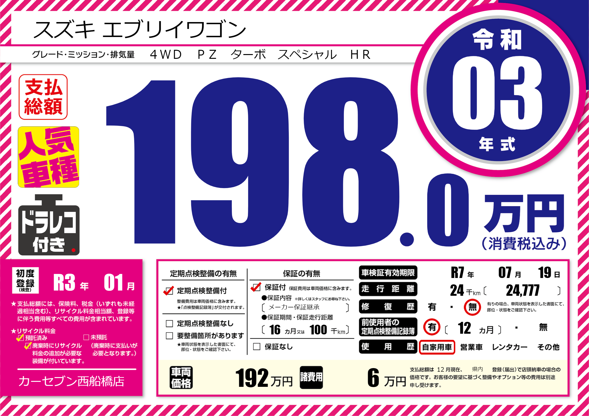| 車検制限 | R7年 07月 19日 | ||