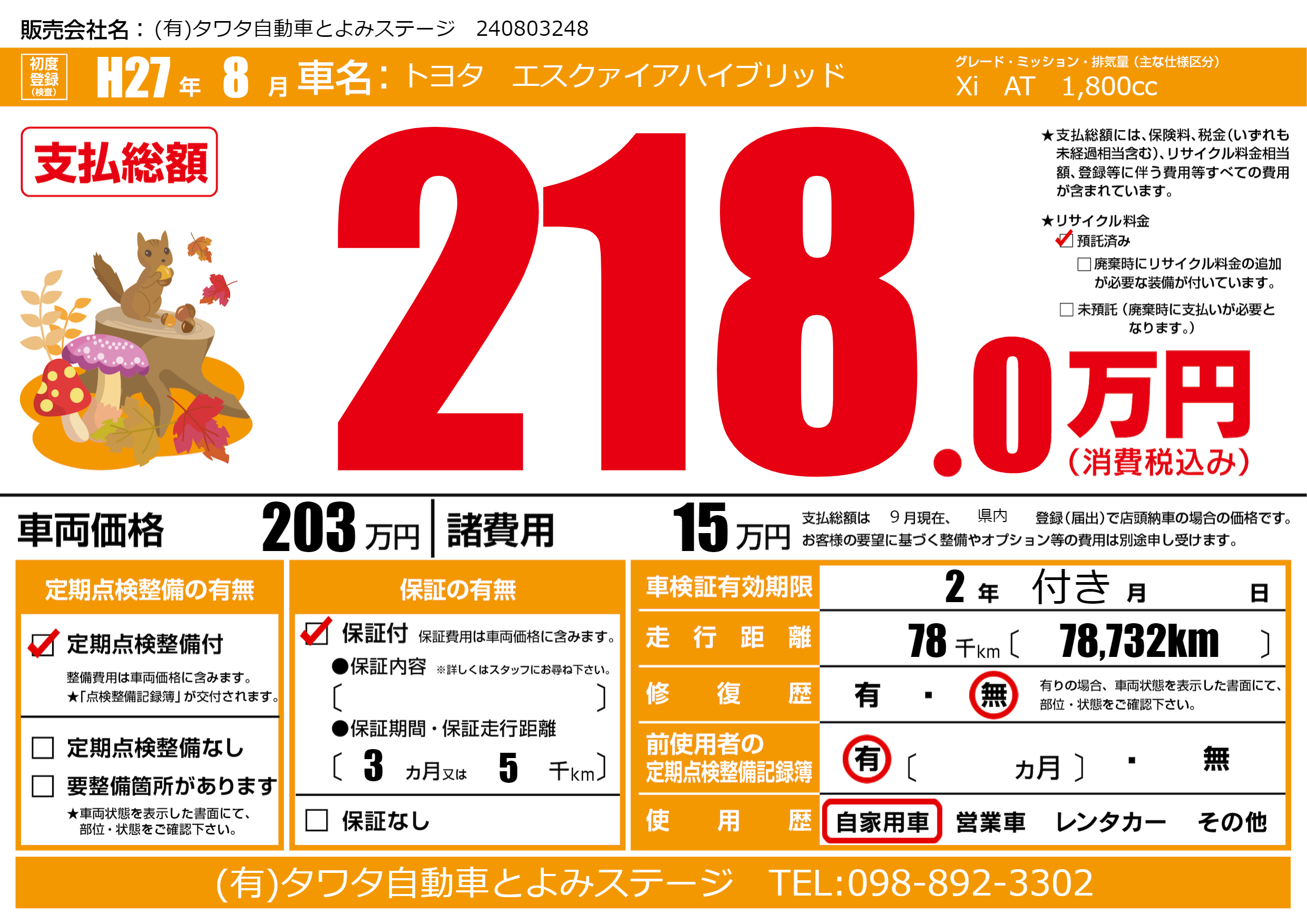 初年度登録 H27年8月