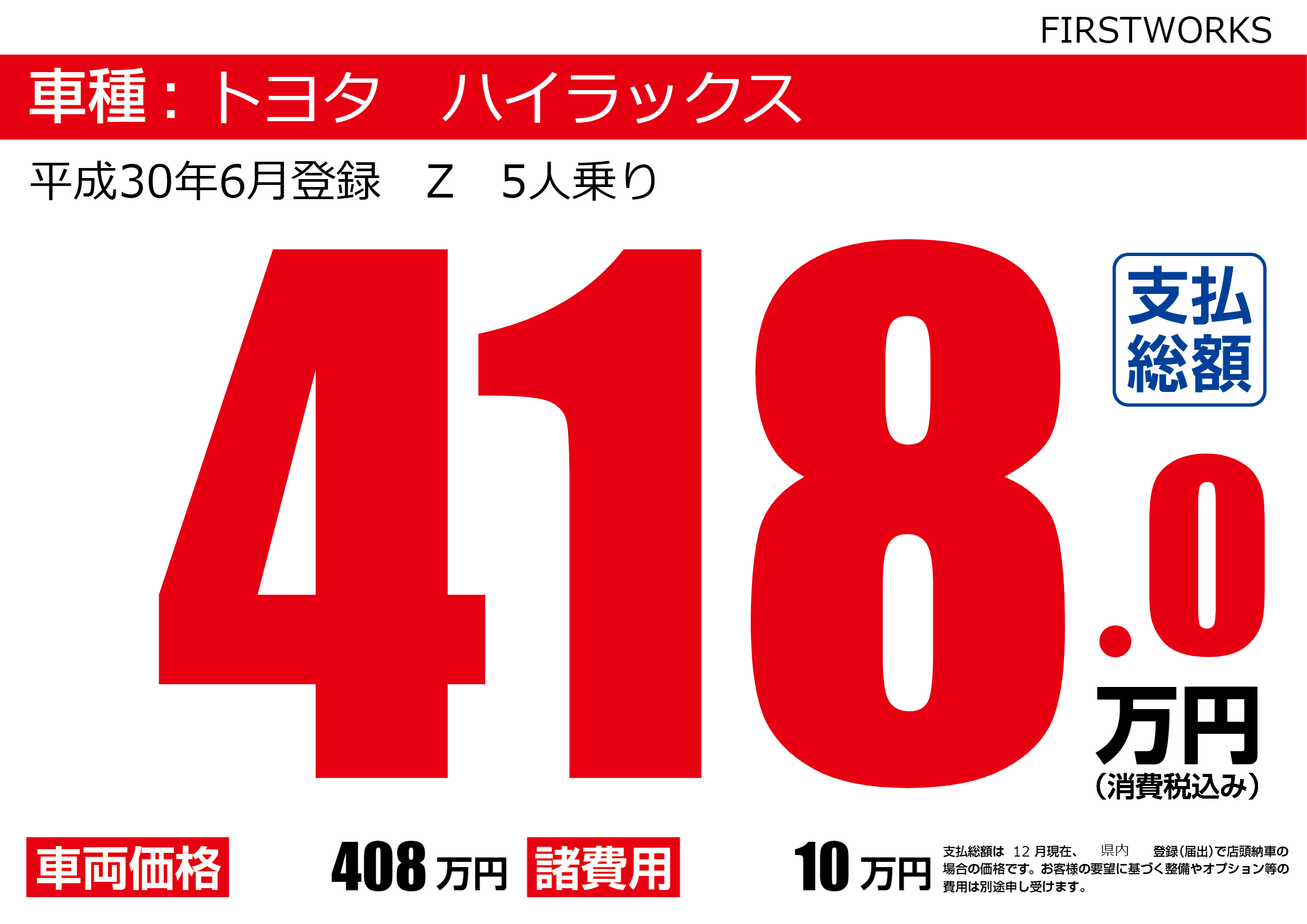 | 車名 | トヨタ ハイラックス | グレード ミッション 排気量 |