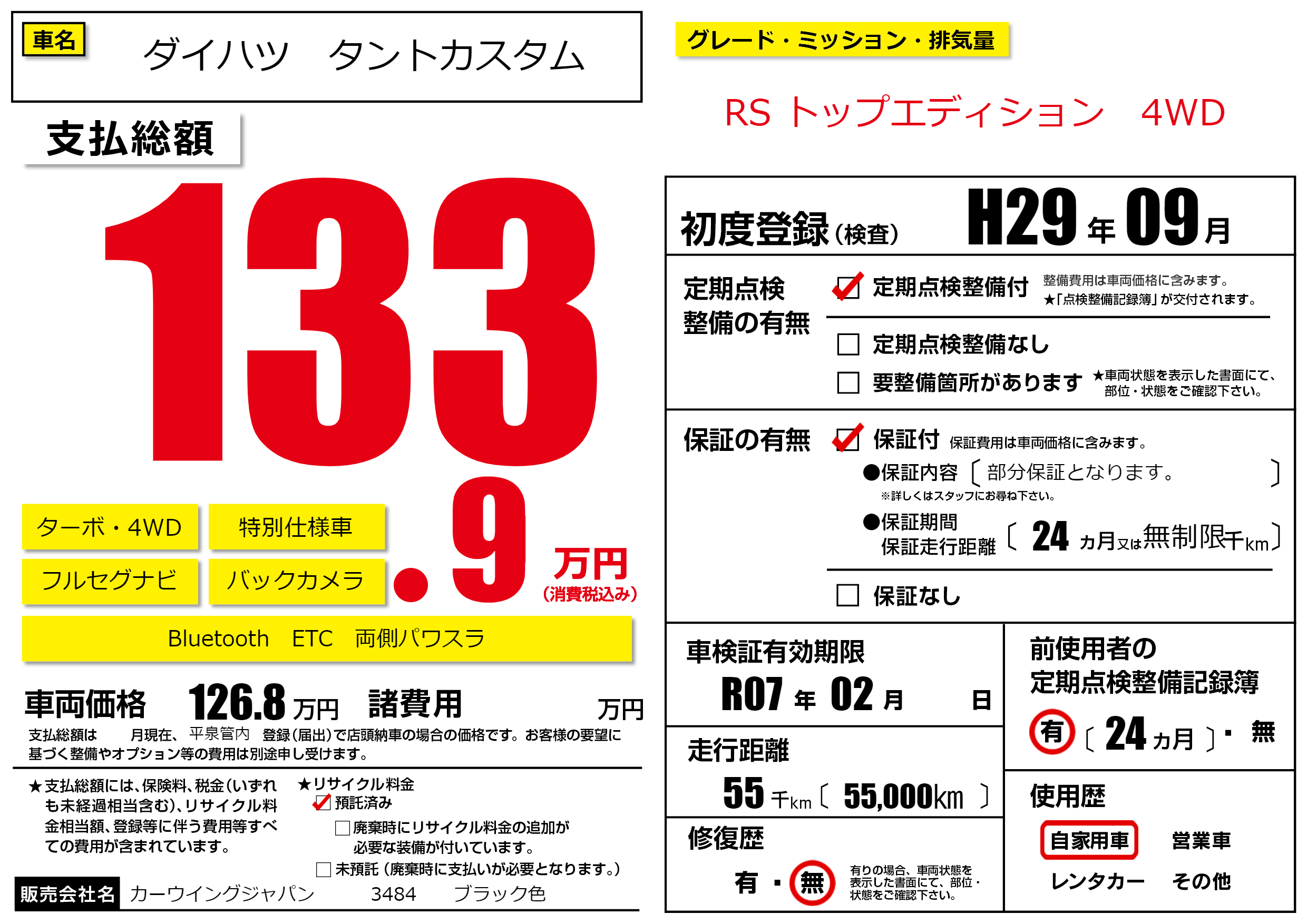 | 定期点検整備 | 定期点検整備あり | ||