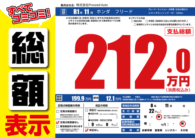 | 車検制限 | - 年 - 月 - 日 | ||