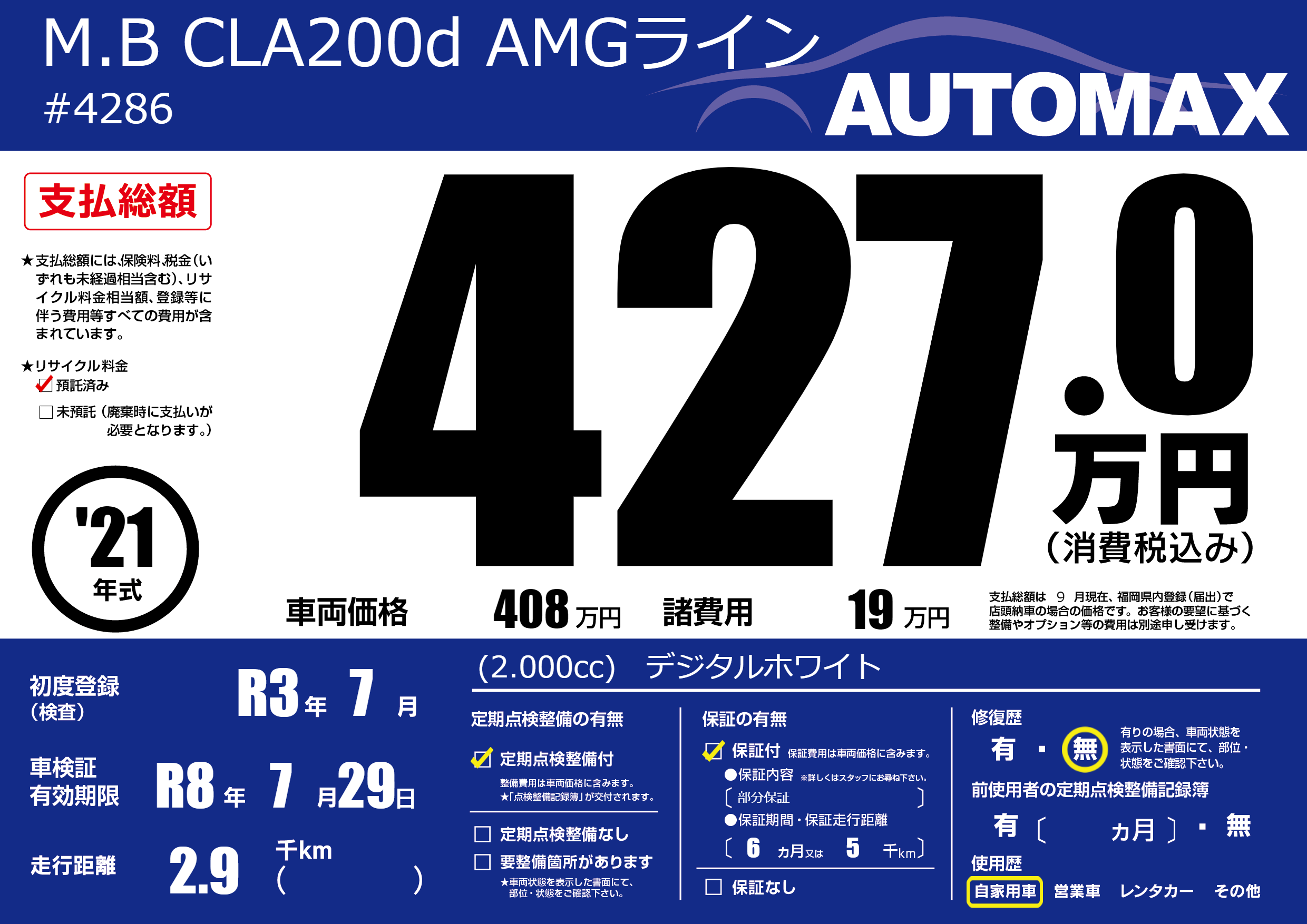 車検制限 R8年 7月 29日