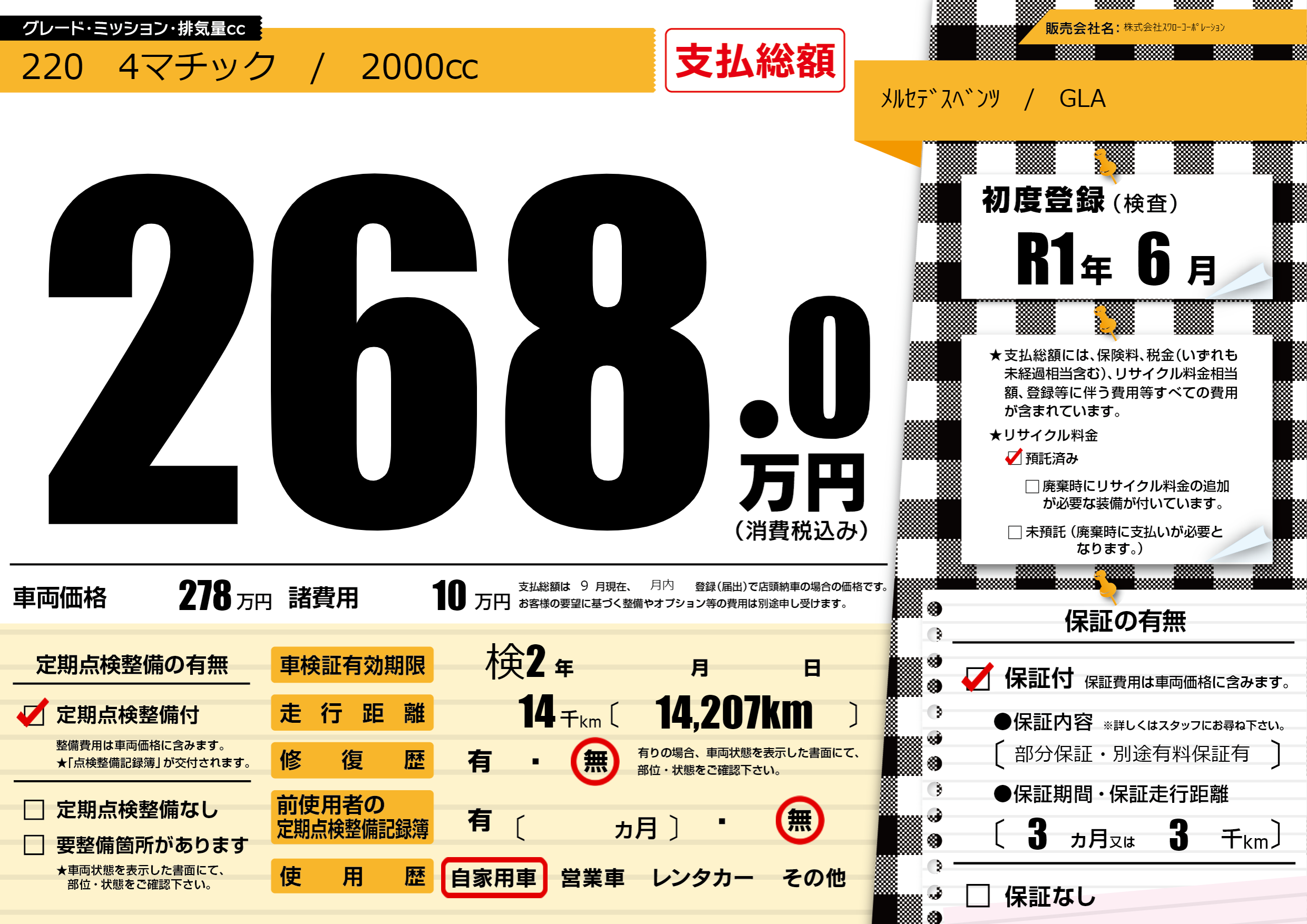 | 定期点検整備 | 定期点検整備あり | ||