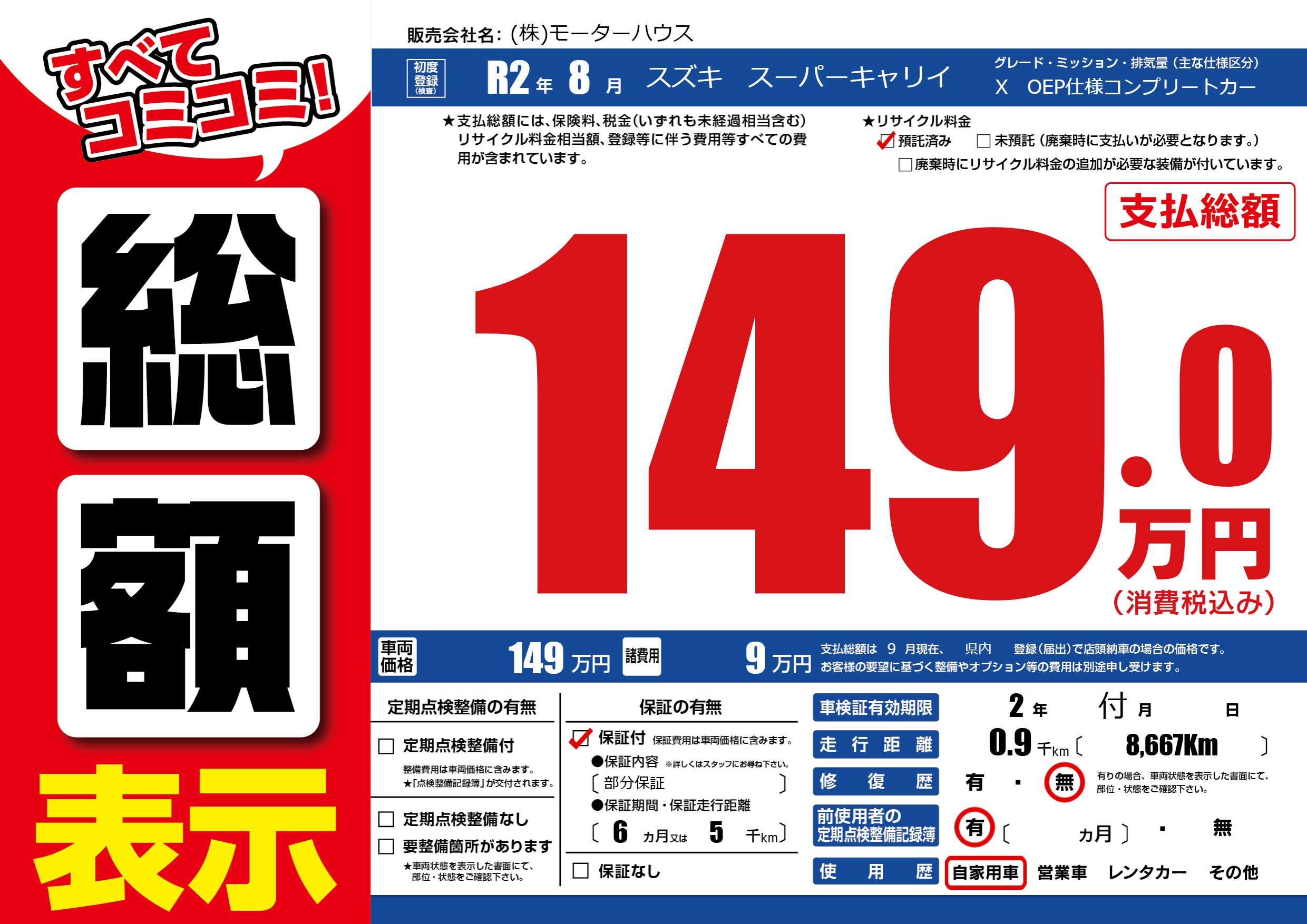 保証なし 保証内容(部分保証) 6ヶ月または(5)千kmまで |