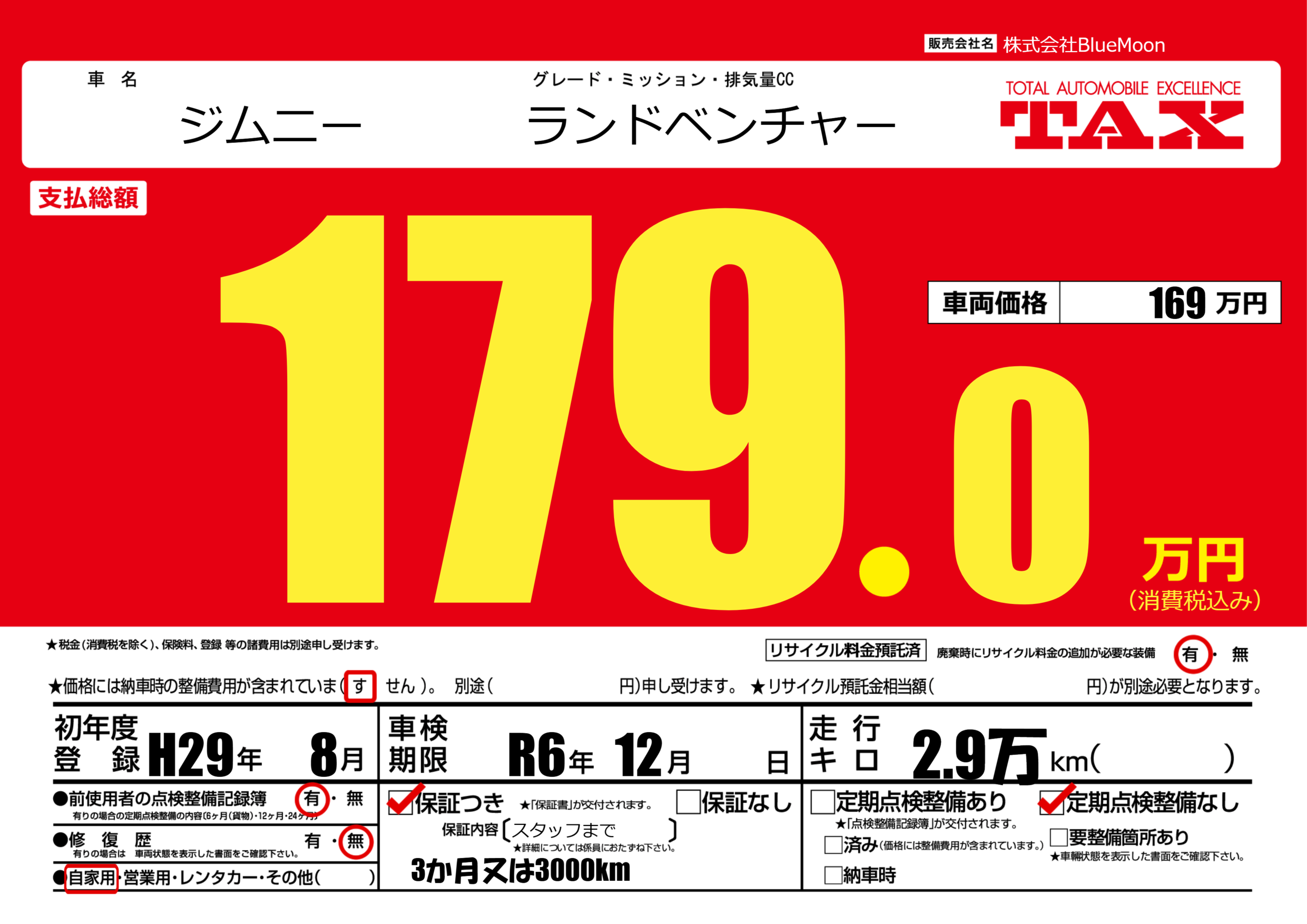 | 車名 | ジムニー | グレード ミッション 排気量 |