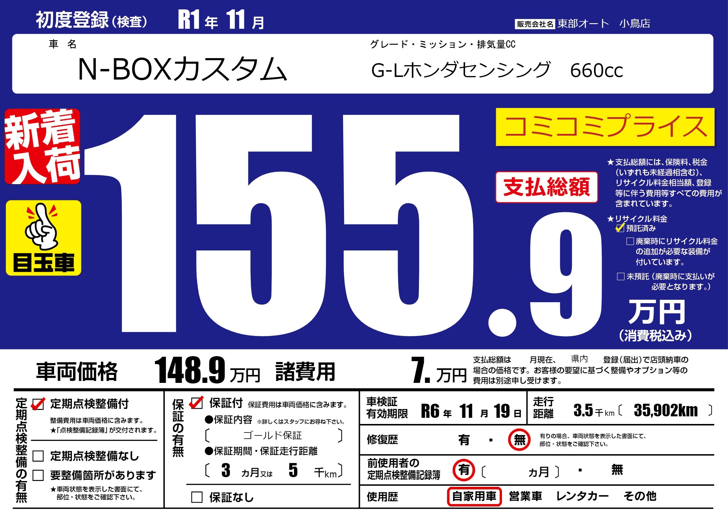 | 車検制限 | R6年 11月 19日 | ||