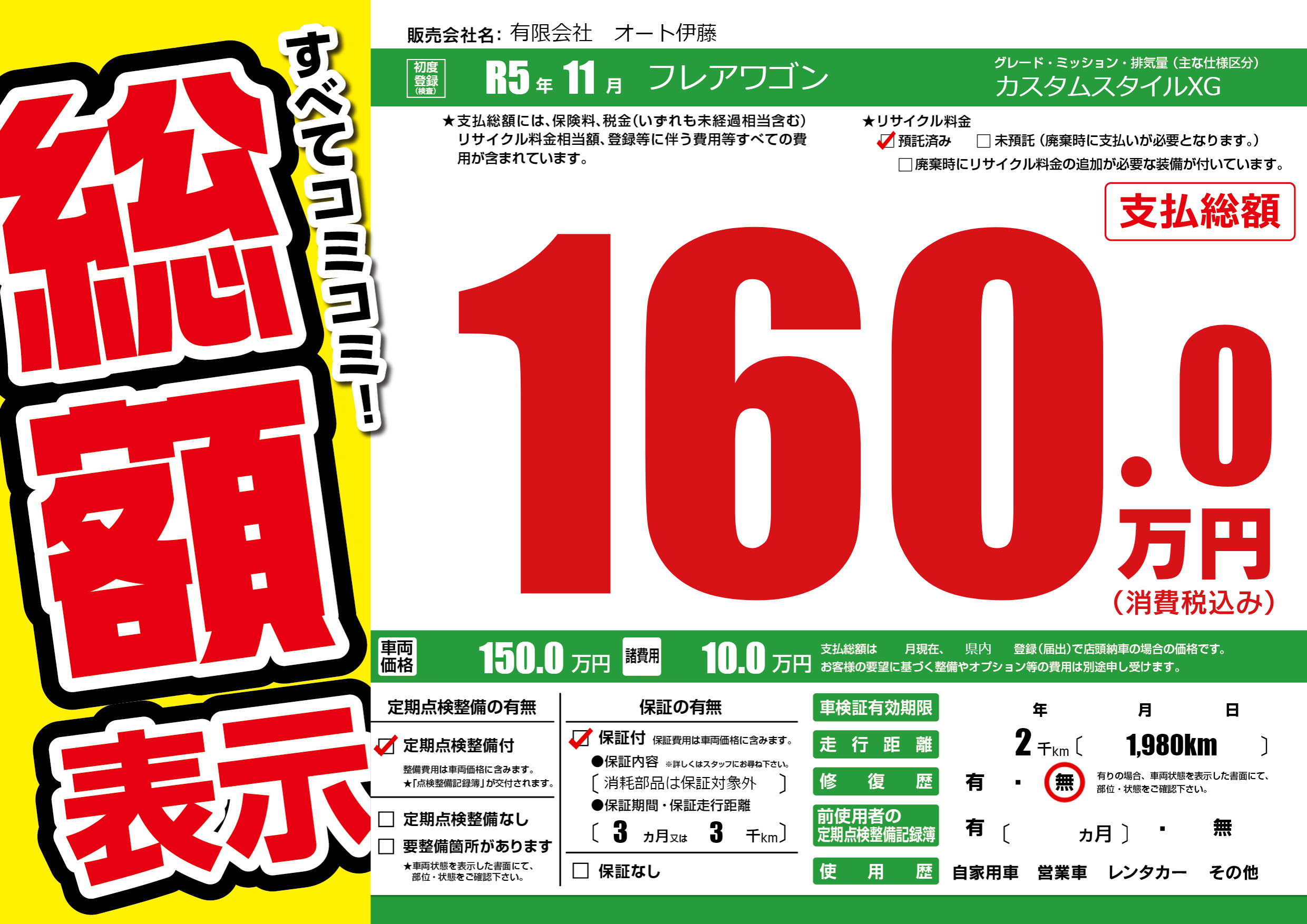 | 定期点検整備 | 定期点検整備あり | ||