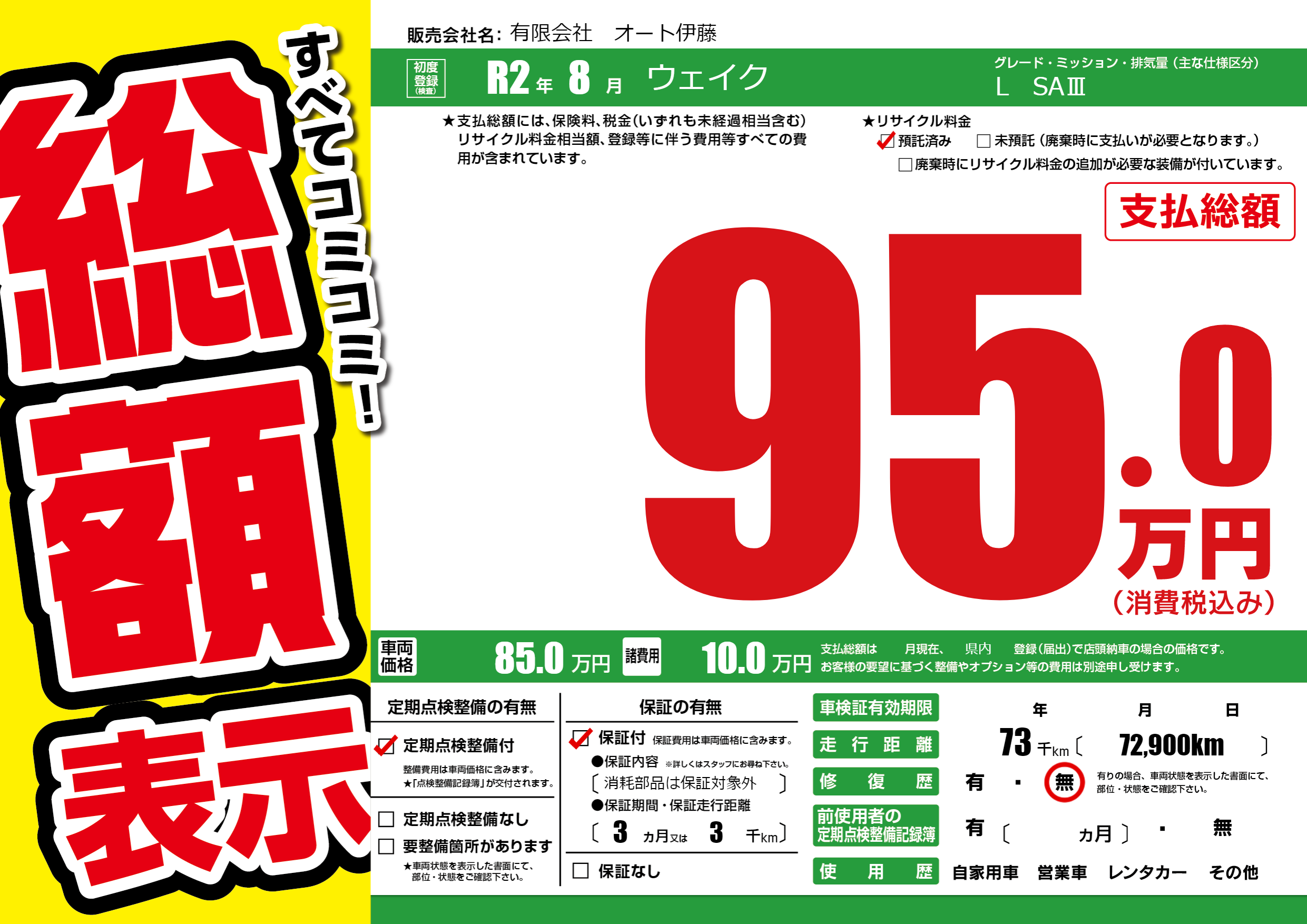 | 車名 | ウェイク | グレード ミッション 排気量 |