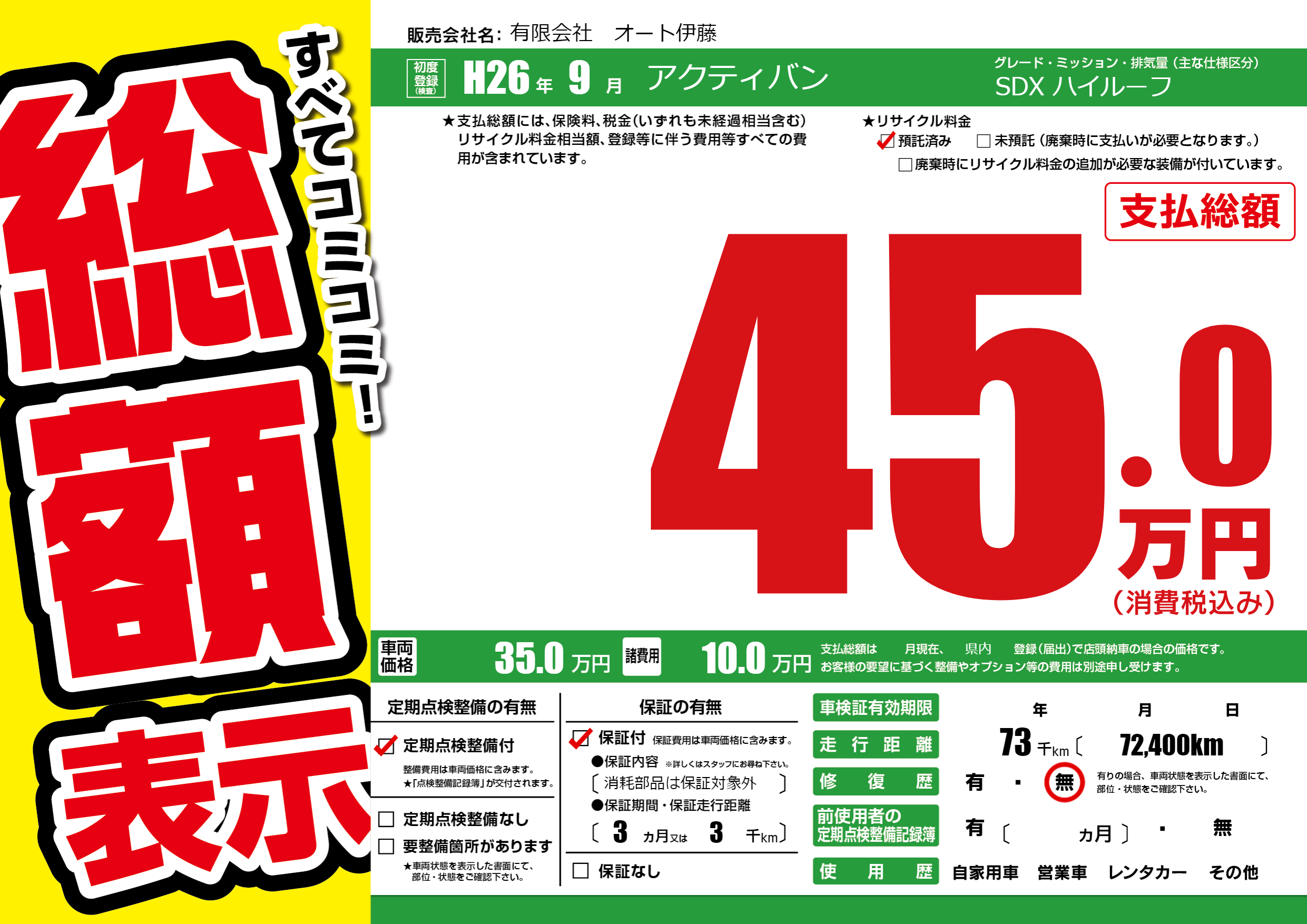 | 車名 | アクティバン | グレード ミッション 排気量 |
