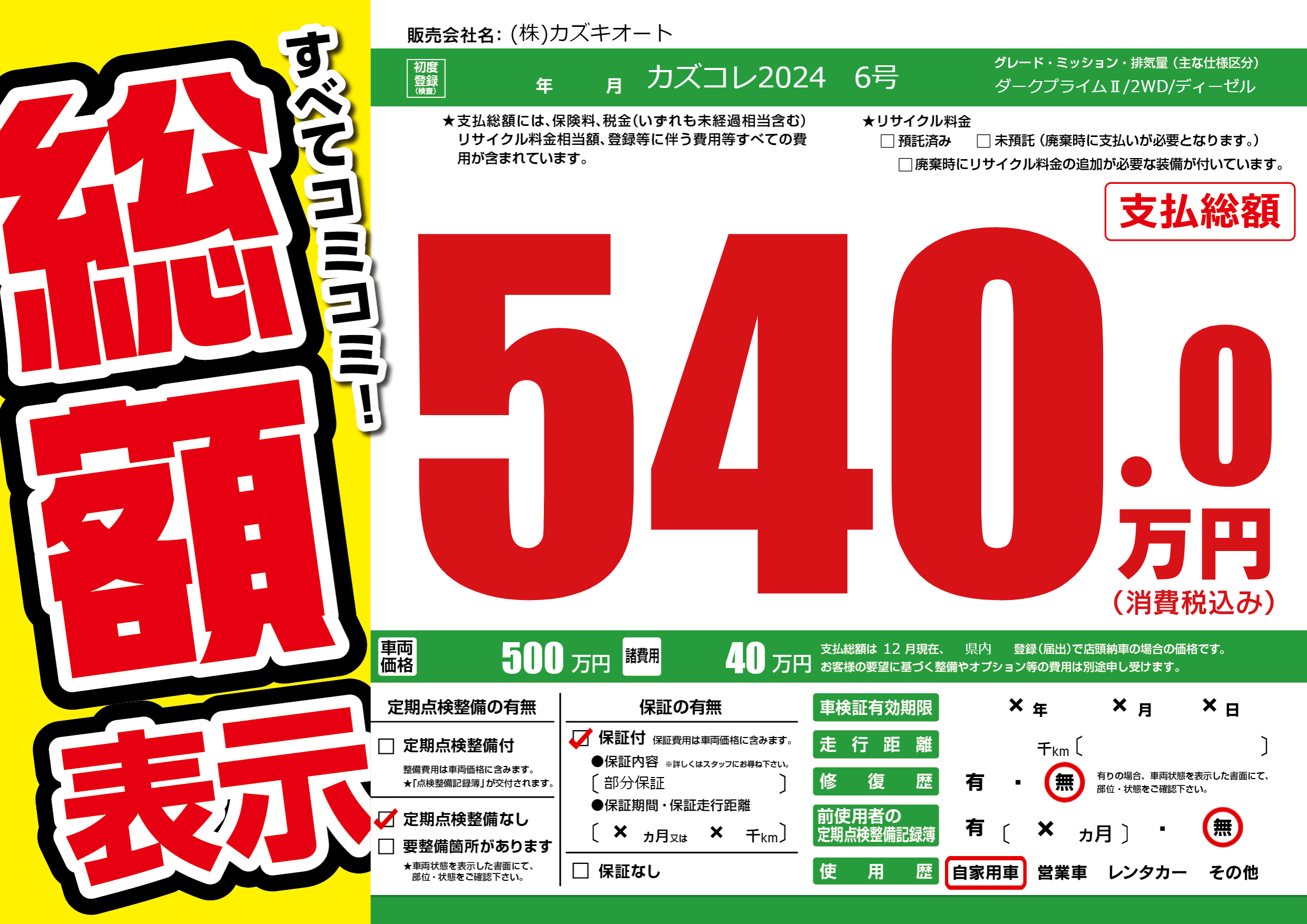 保証付き 保証内容(部分保証) ×ヶ月または×千km |
