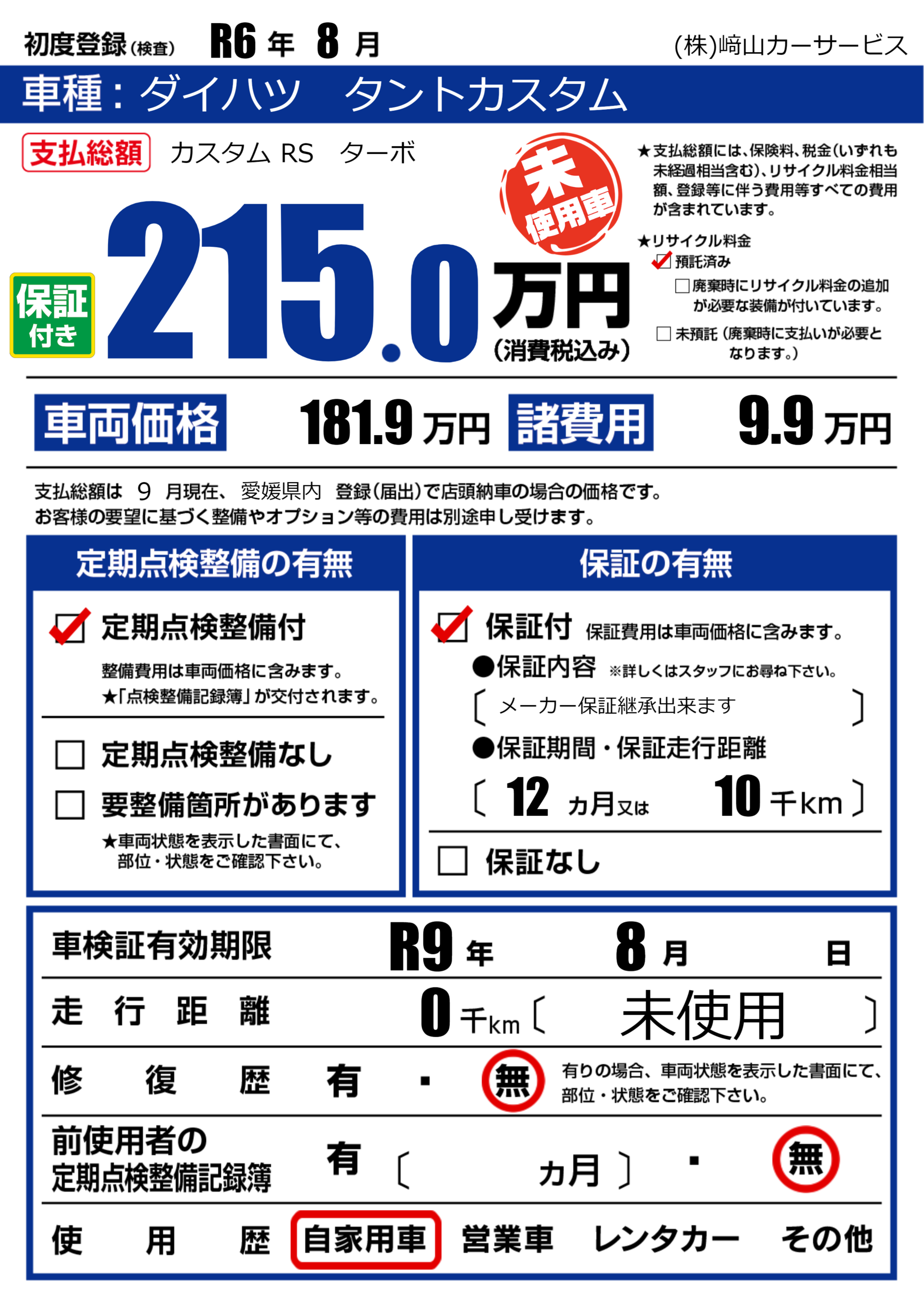 なし | 車検制限 | R9年8月---月 |