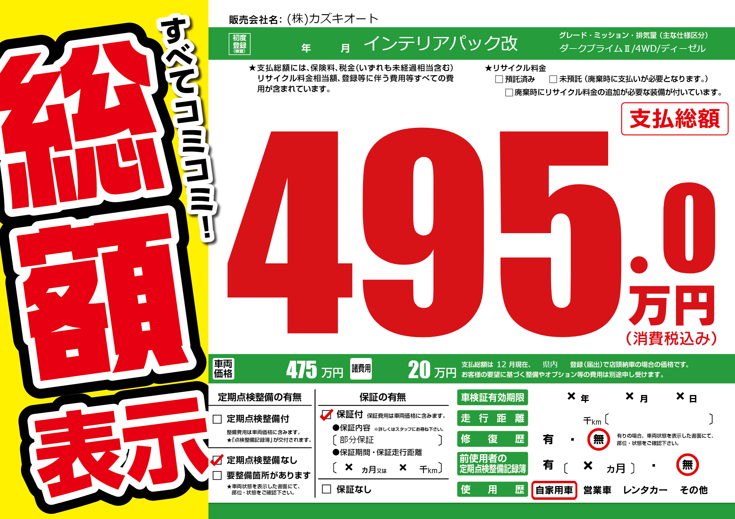 保証付き 保証内容(部分保証) ×ヶ月または×千km |