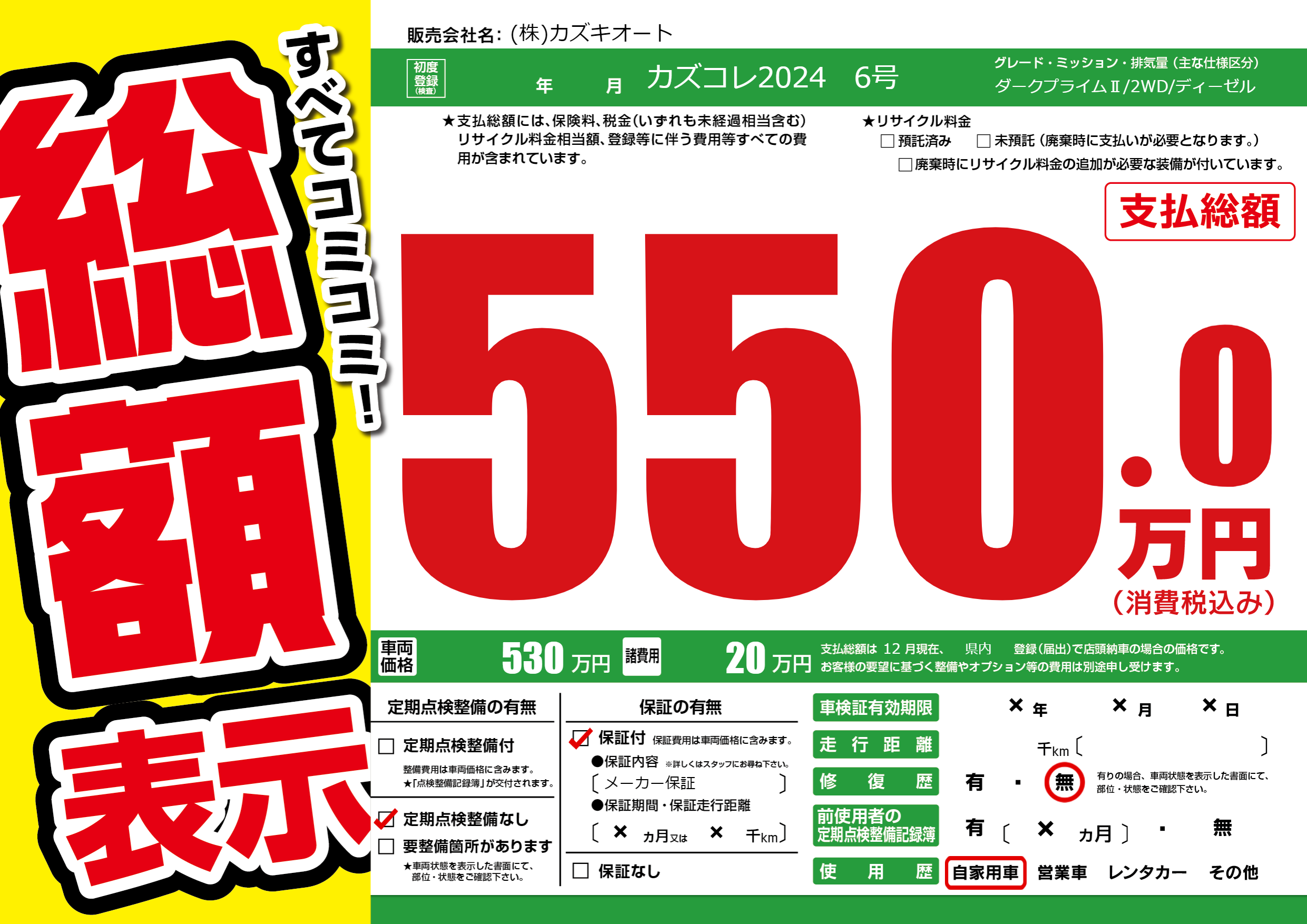 保証付き 保証内容(メーカー保証) ×ヶ月または×千km |