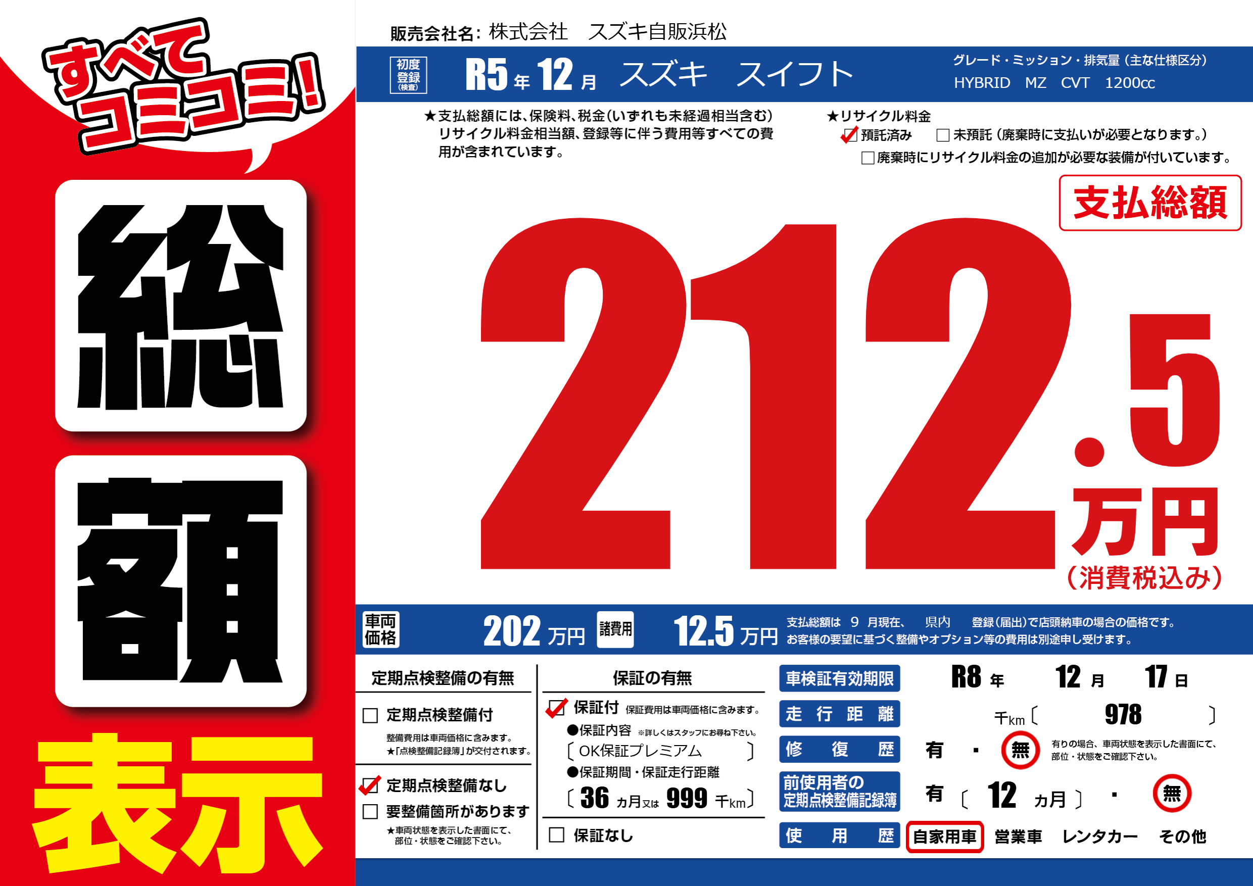 なし | 車検制限 | R8年12月17月 |