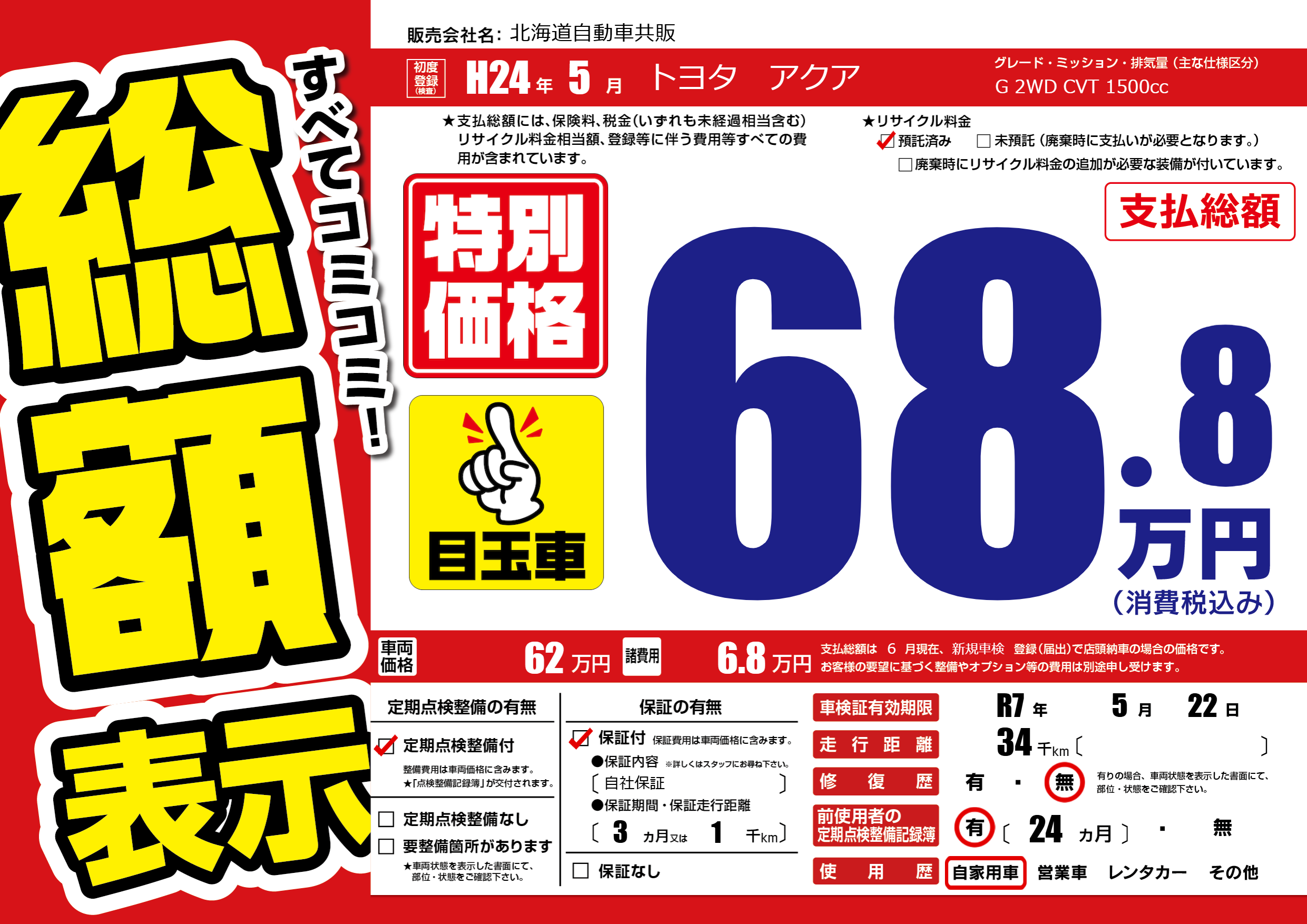 なし | 車検制限 | R7年5月22月 |