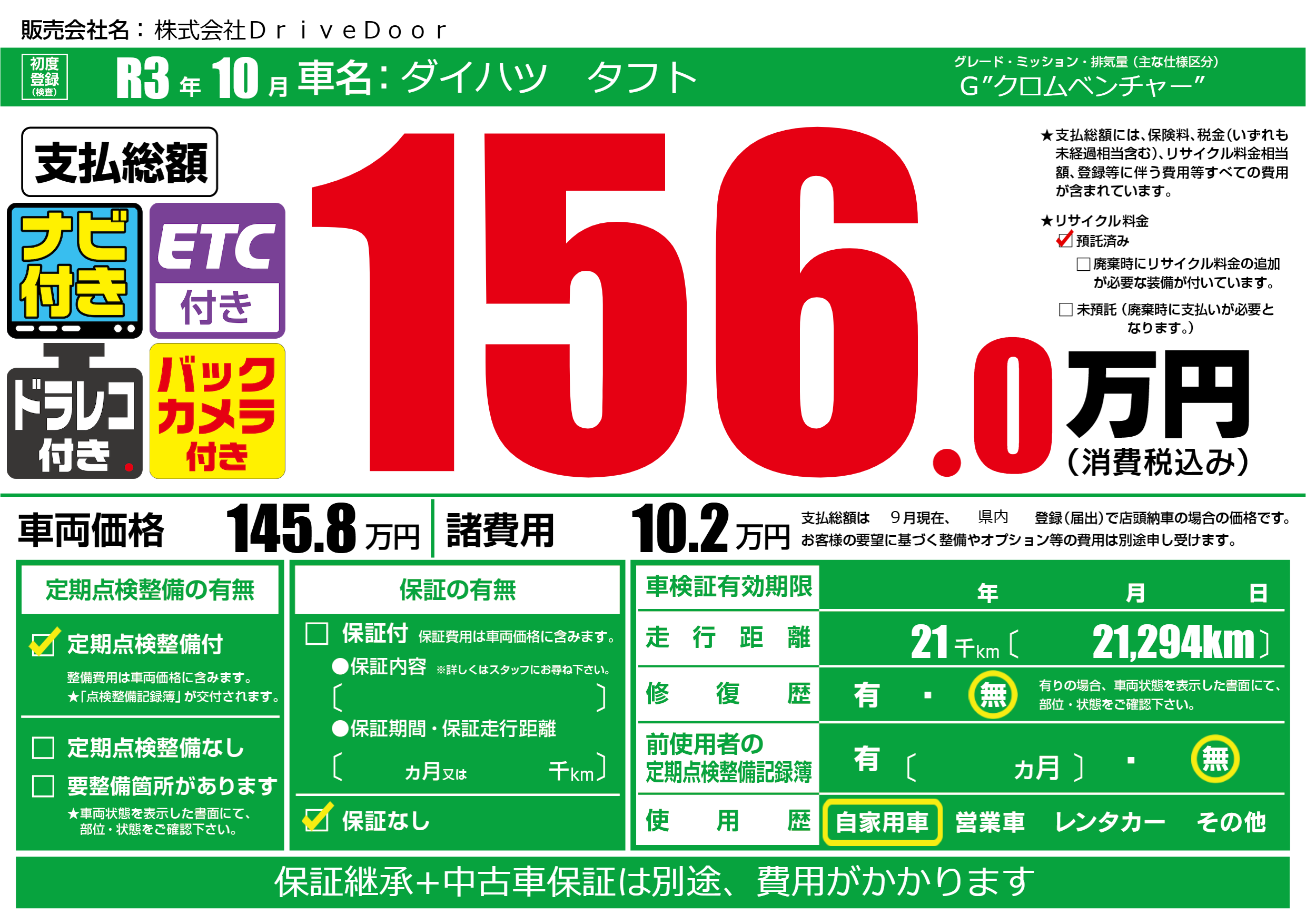 | 定期点検整備 | 定期点検整備あり | ||