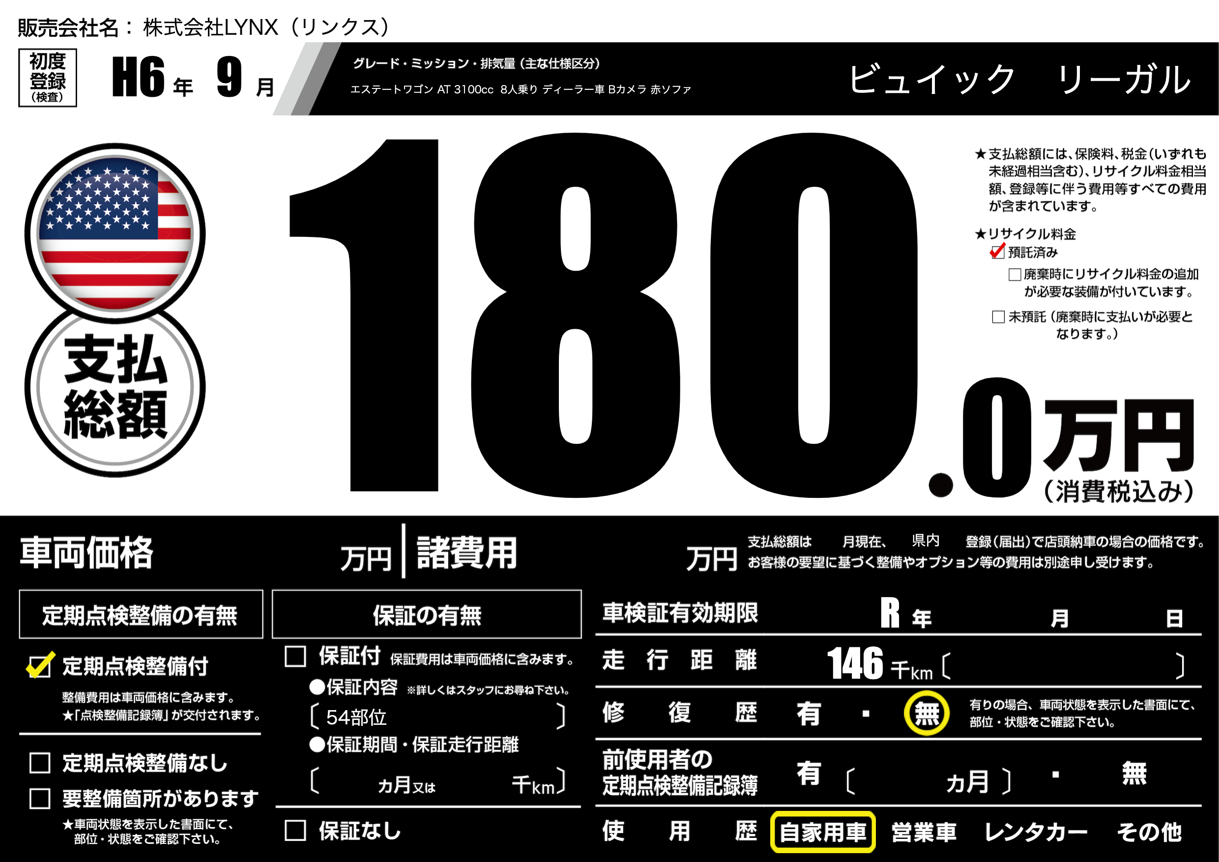 | 車名 | ビュイック リーガル | グレード ミッション 排気量 |
