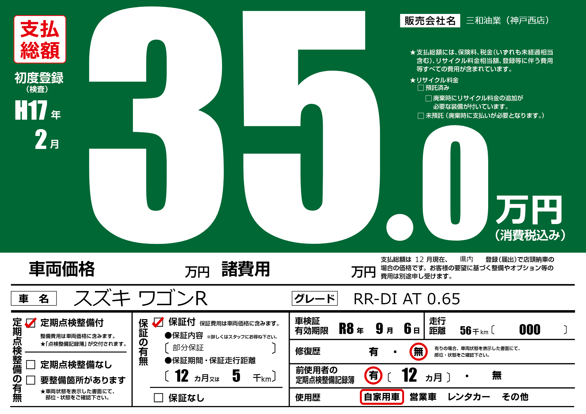 | 走行キロ | 5.6万km | 初年度登録 | H17年2月 |