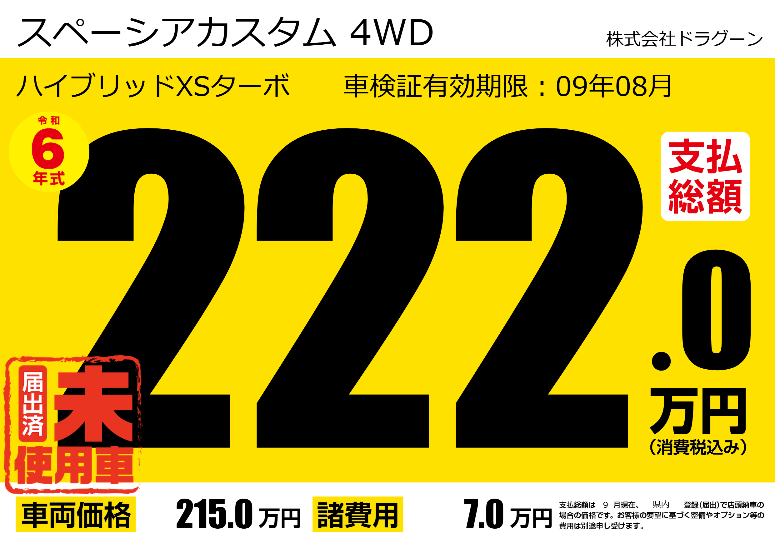 | 車名 | スペーシアカスタム 4WD | グレード ミッション 排気量 |
