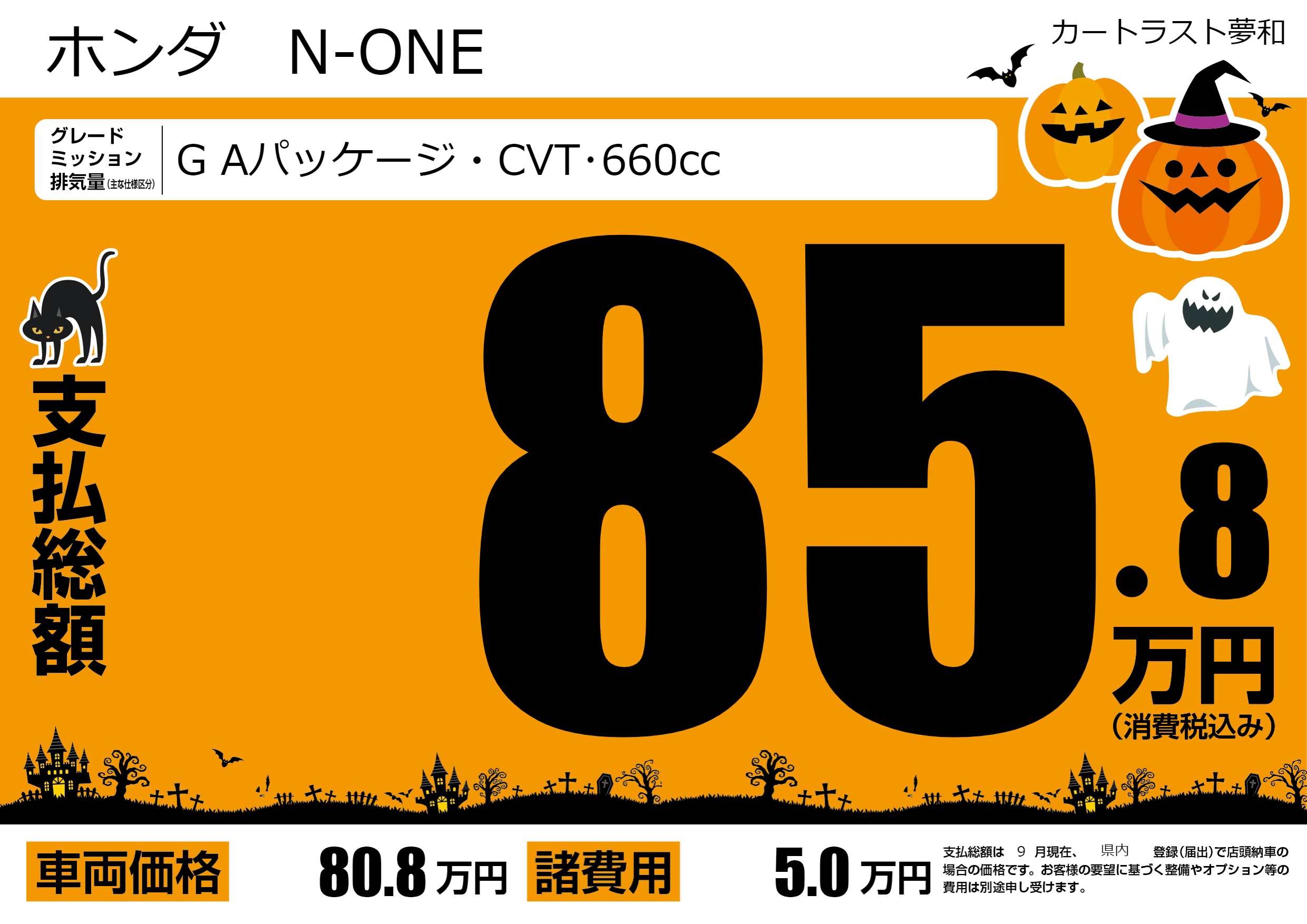 | 車名 | ホンダ N-ONE | グレード ミッション 排気量 |