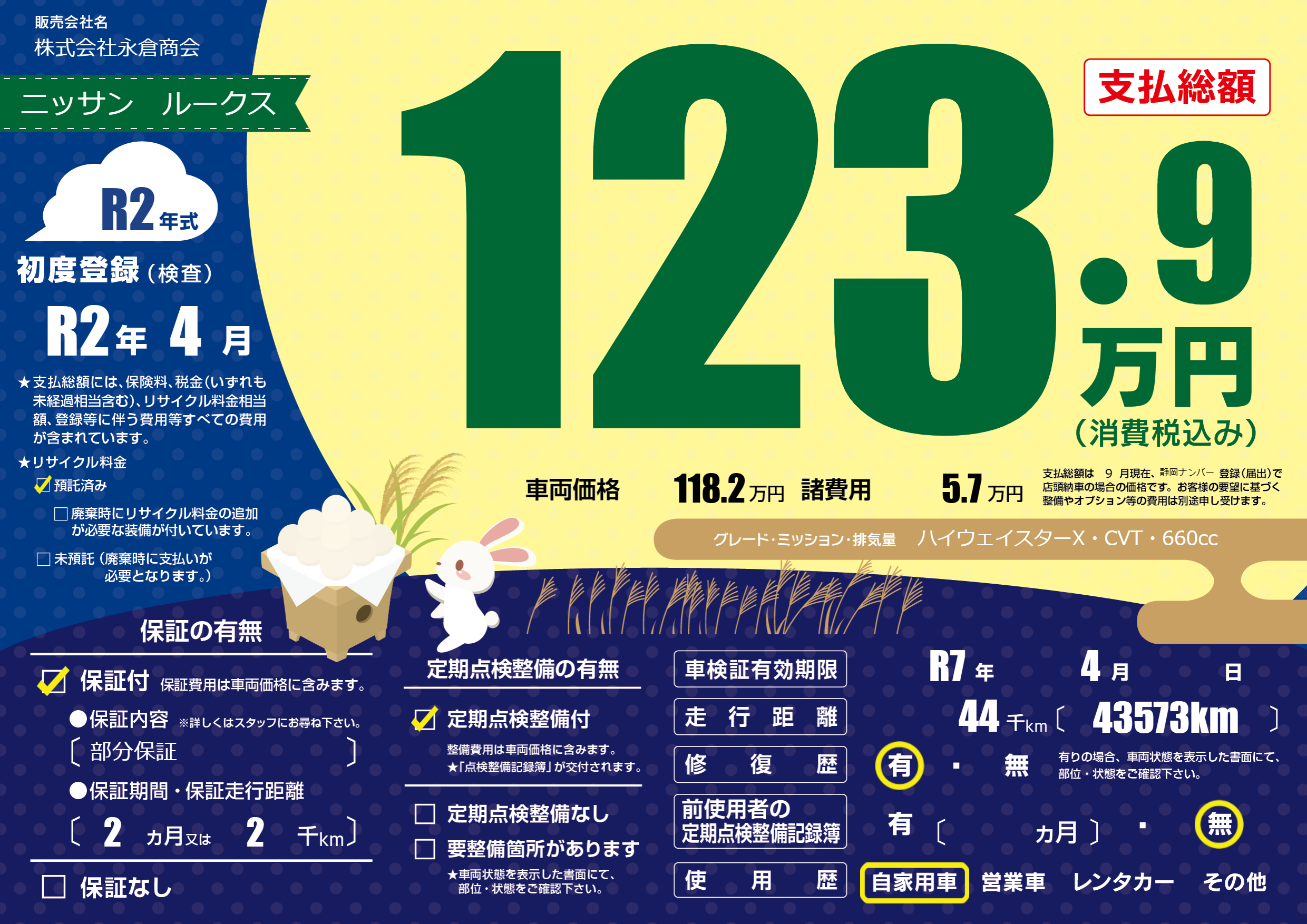 なし | 車検制限 | R7年4月---月 |