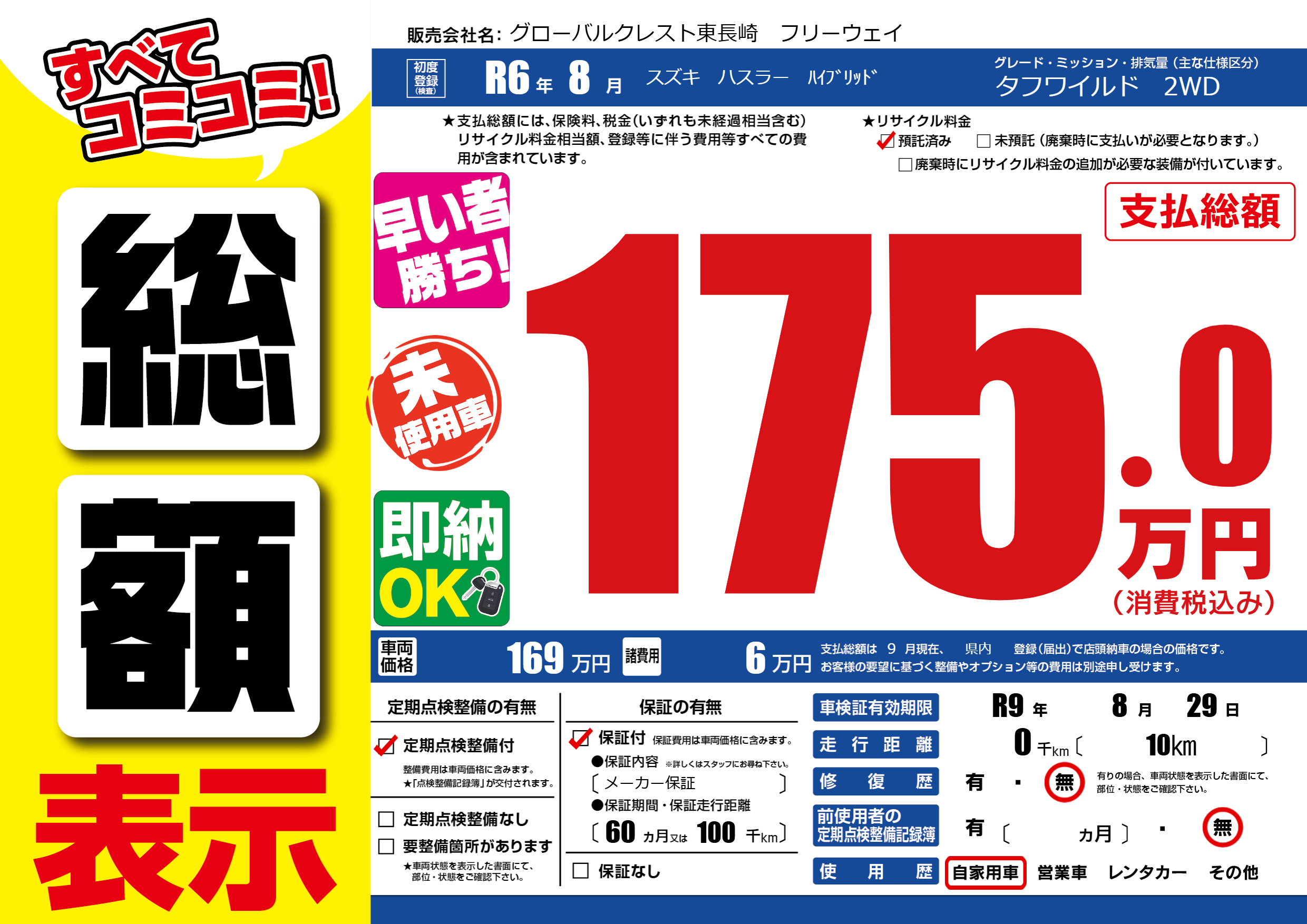 | 走行キロ | - | 初年度登録 | R6年8月 |