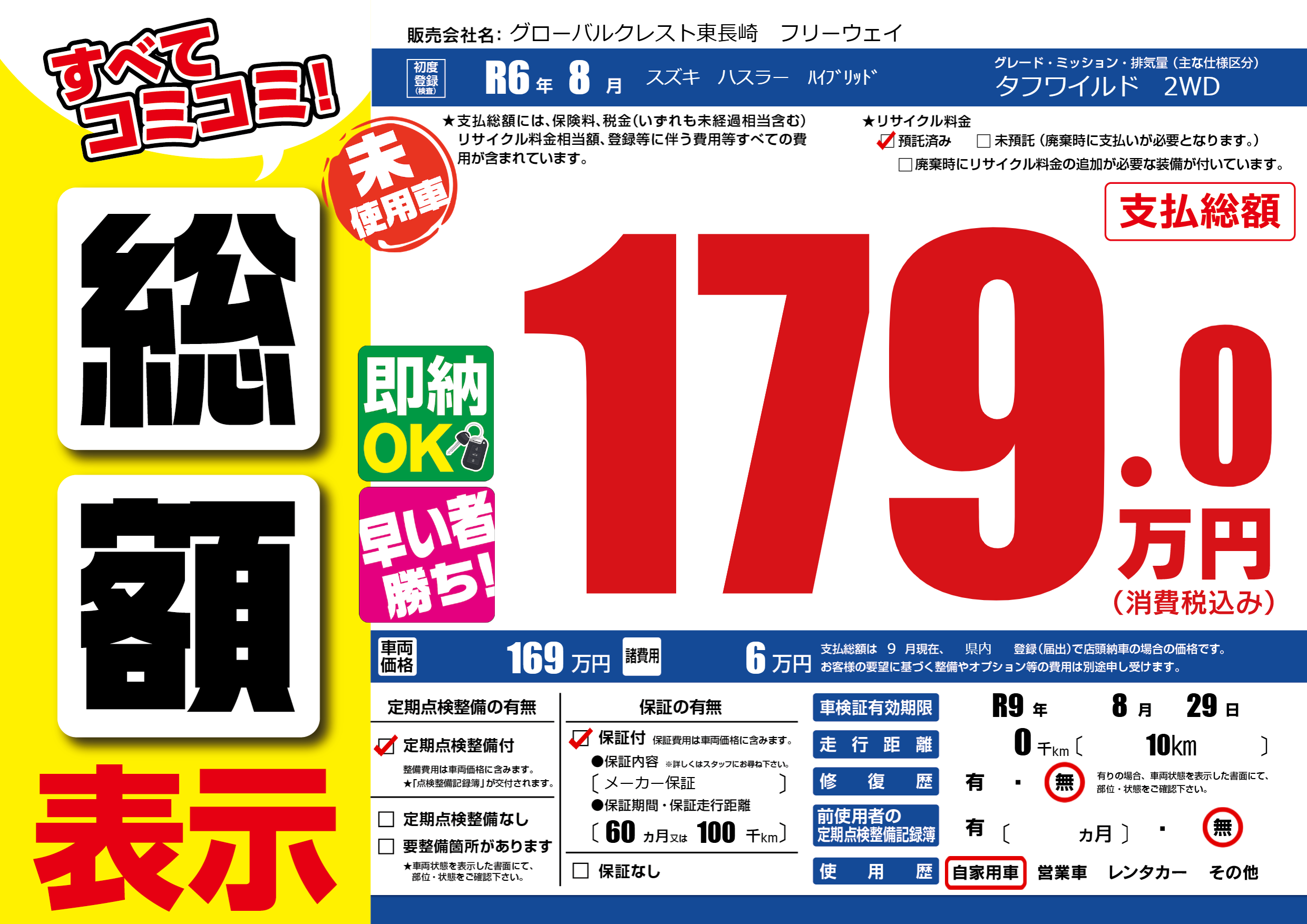 | 走行キロ | - | 初年度登録 | R6年8月 |
