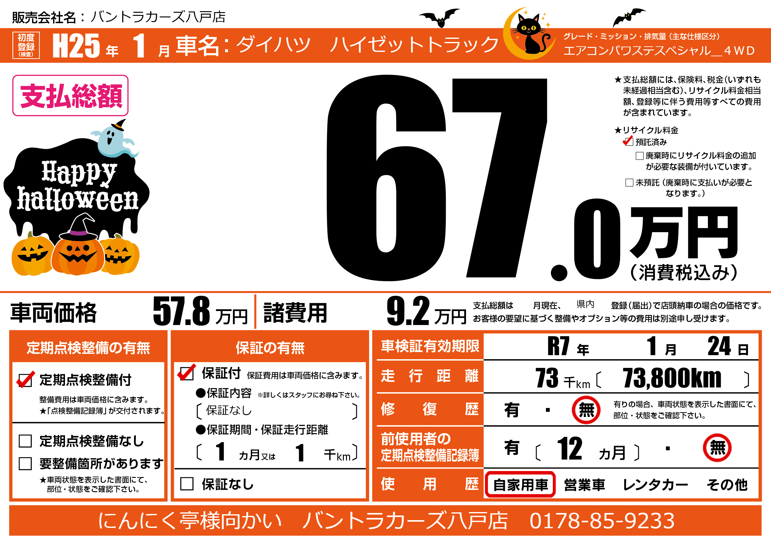 | 走行キロ | 7.3万km | 初年度登録 | H25年1月 |