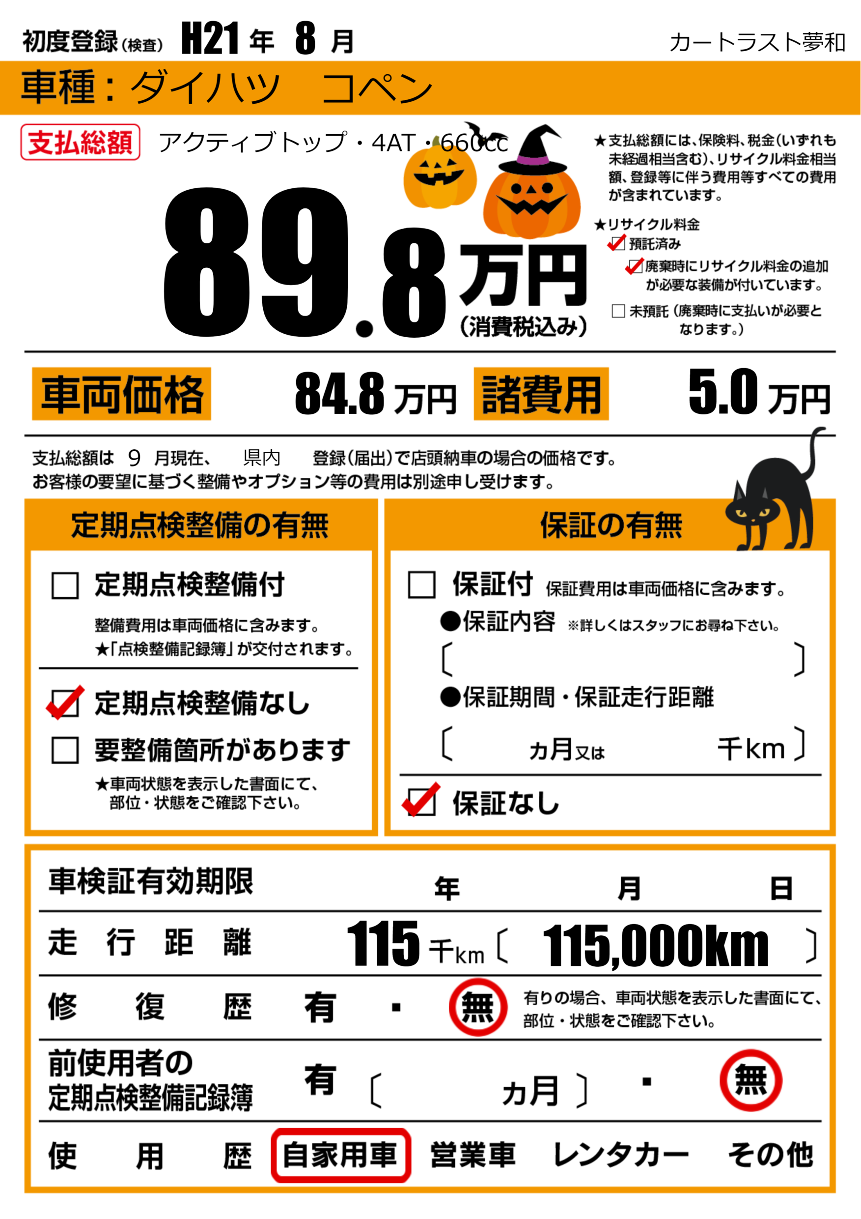 | 定期点検整備 | 定期点検整備なし | ||