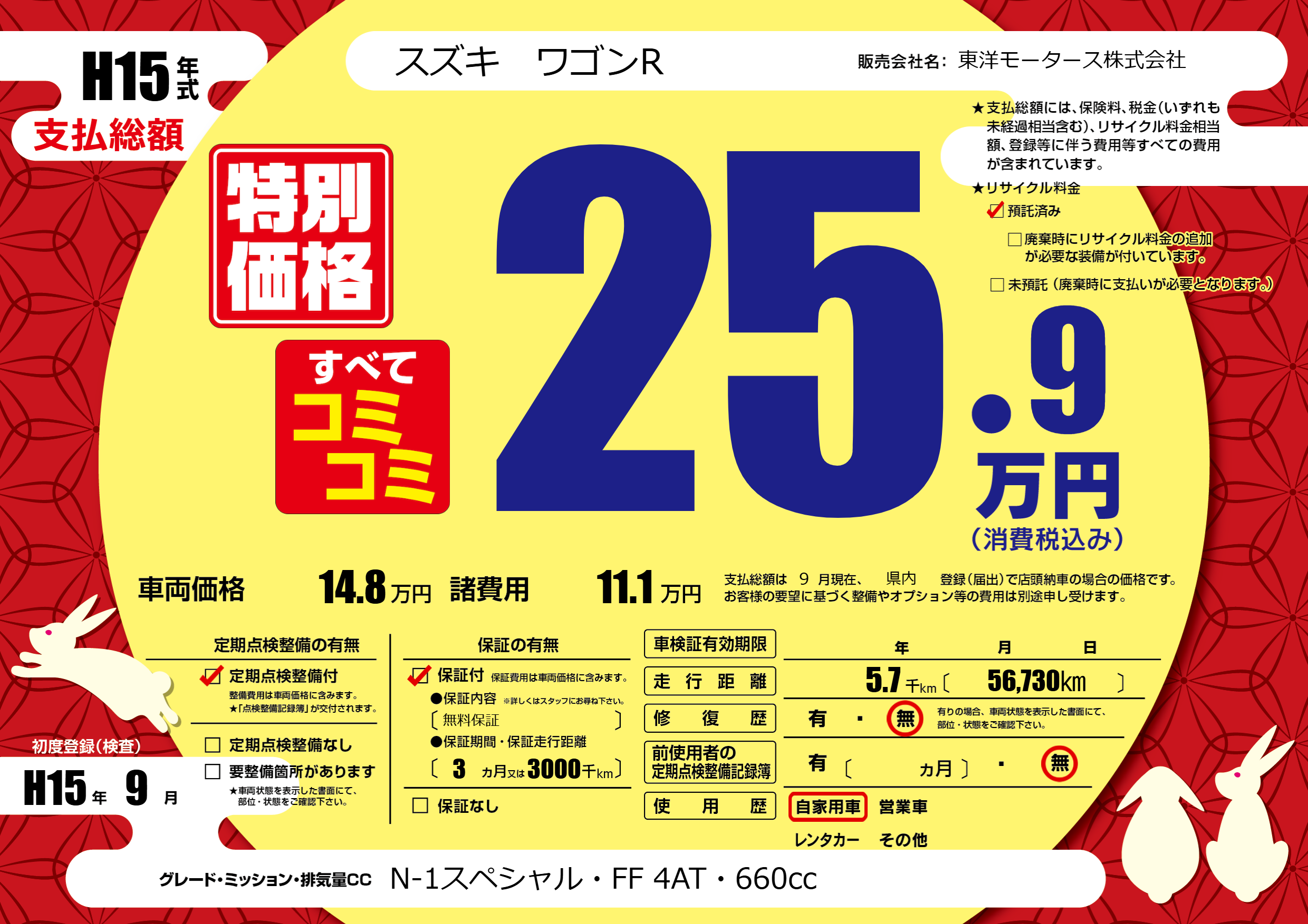 | 初年度登録 | H15年9月 | ||