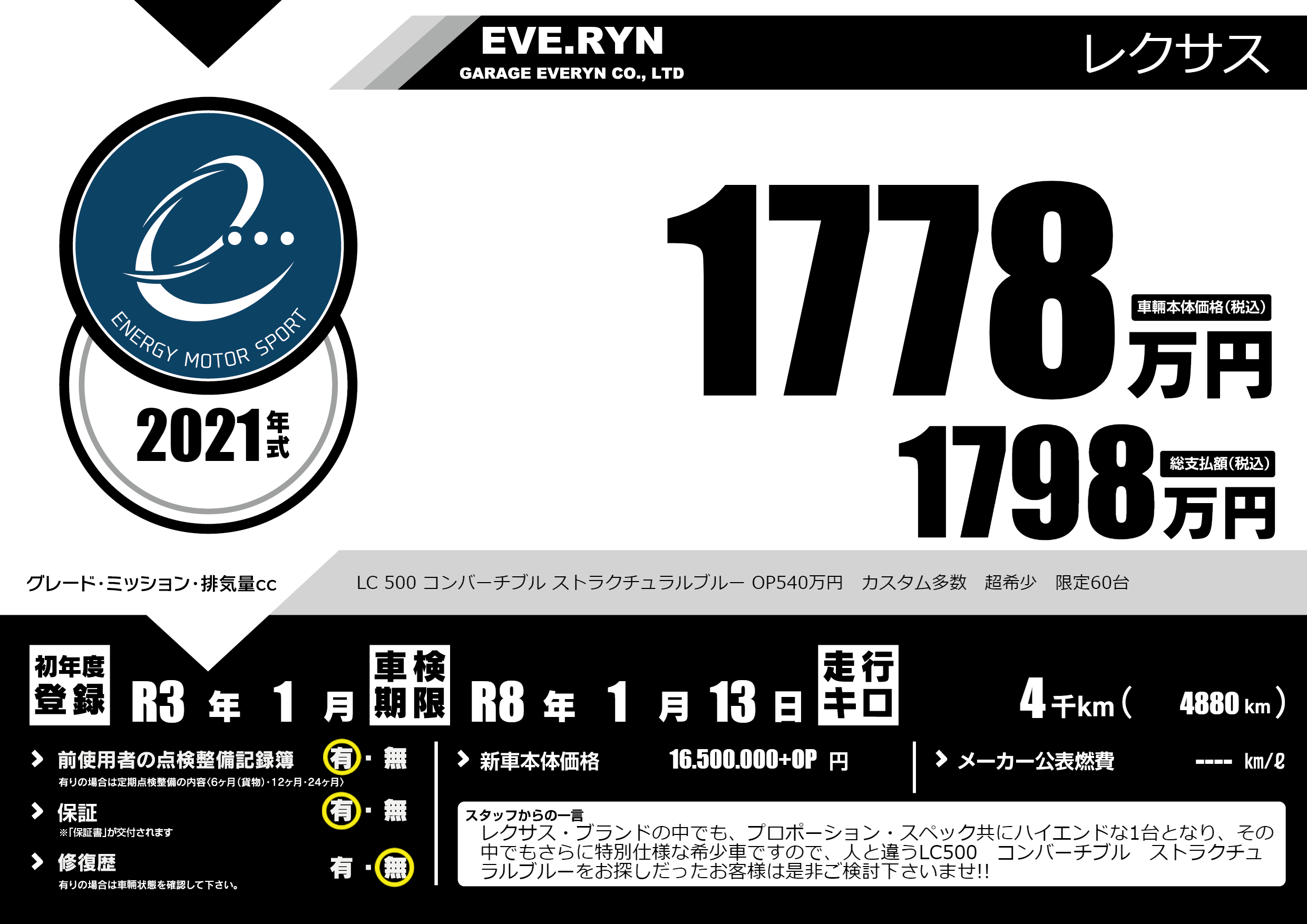 LC 500 コンバーチブル ストラクチュラルブルー OP540万円 カスタム多数 超希少 限定60台 |