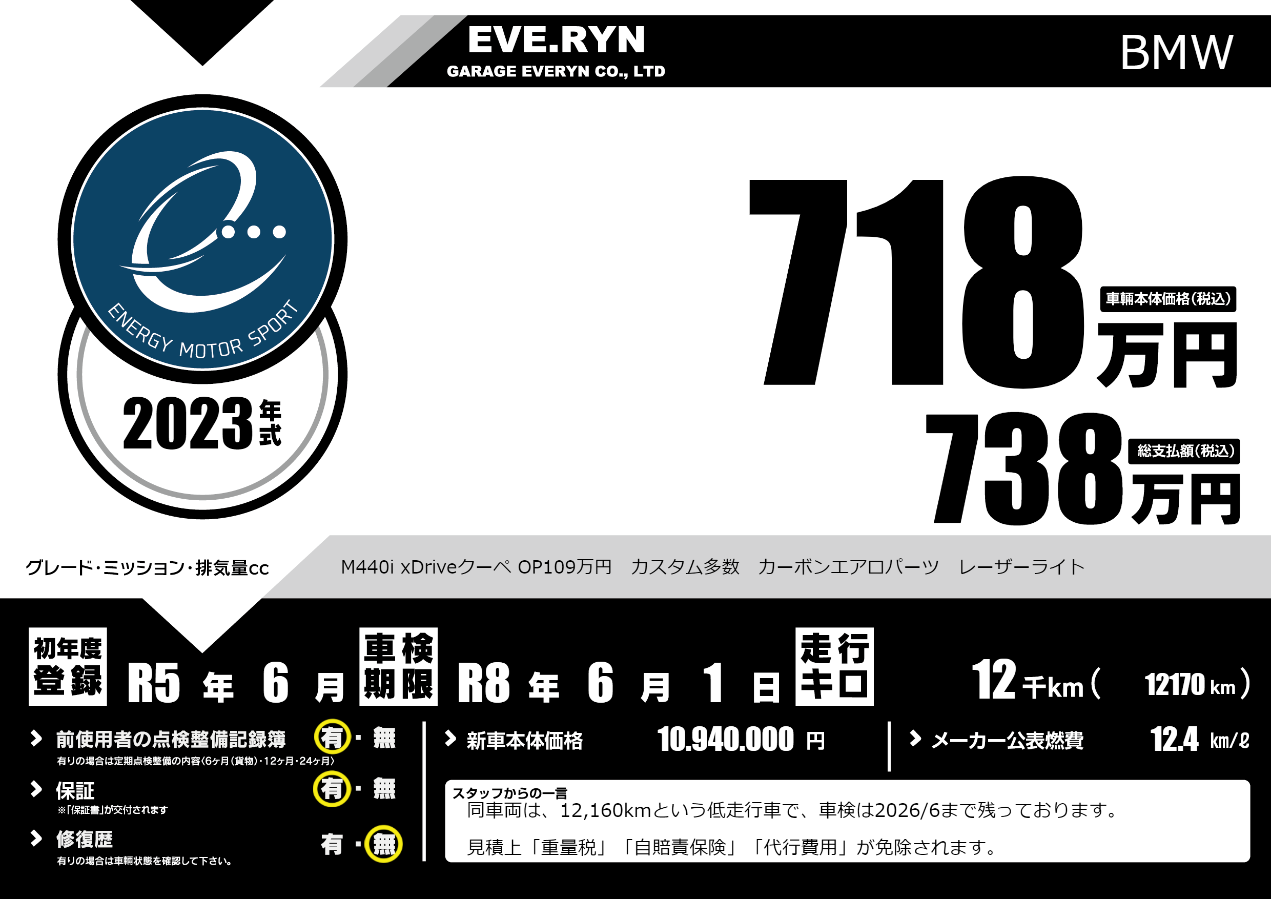 M440i xDriveクーペ OP109万円 カスタム多数 カーボンエアロパーツ レーザーライト |