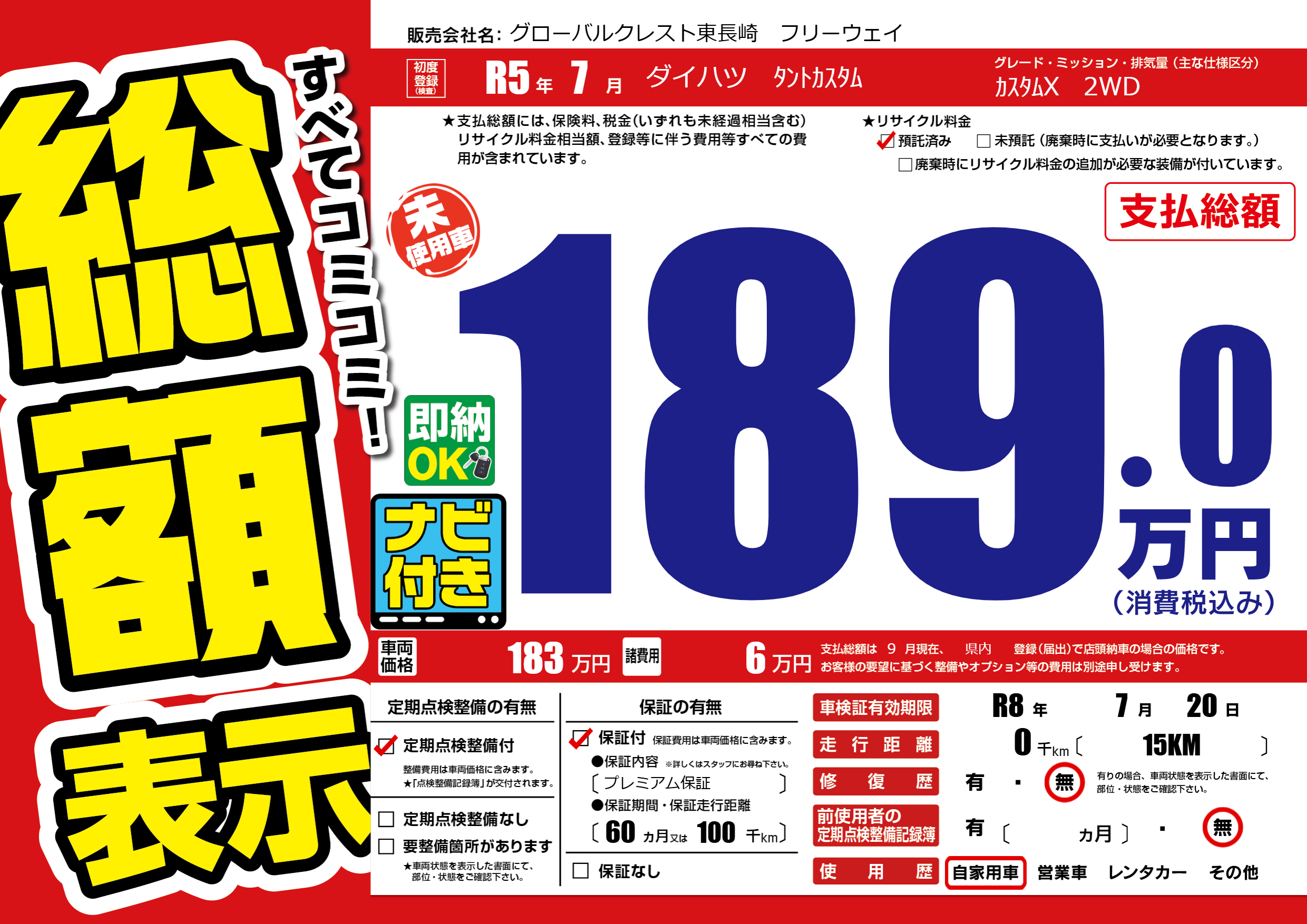 | 走行キロ | - | 初年度登録 | R5年7月 |
