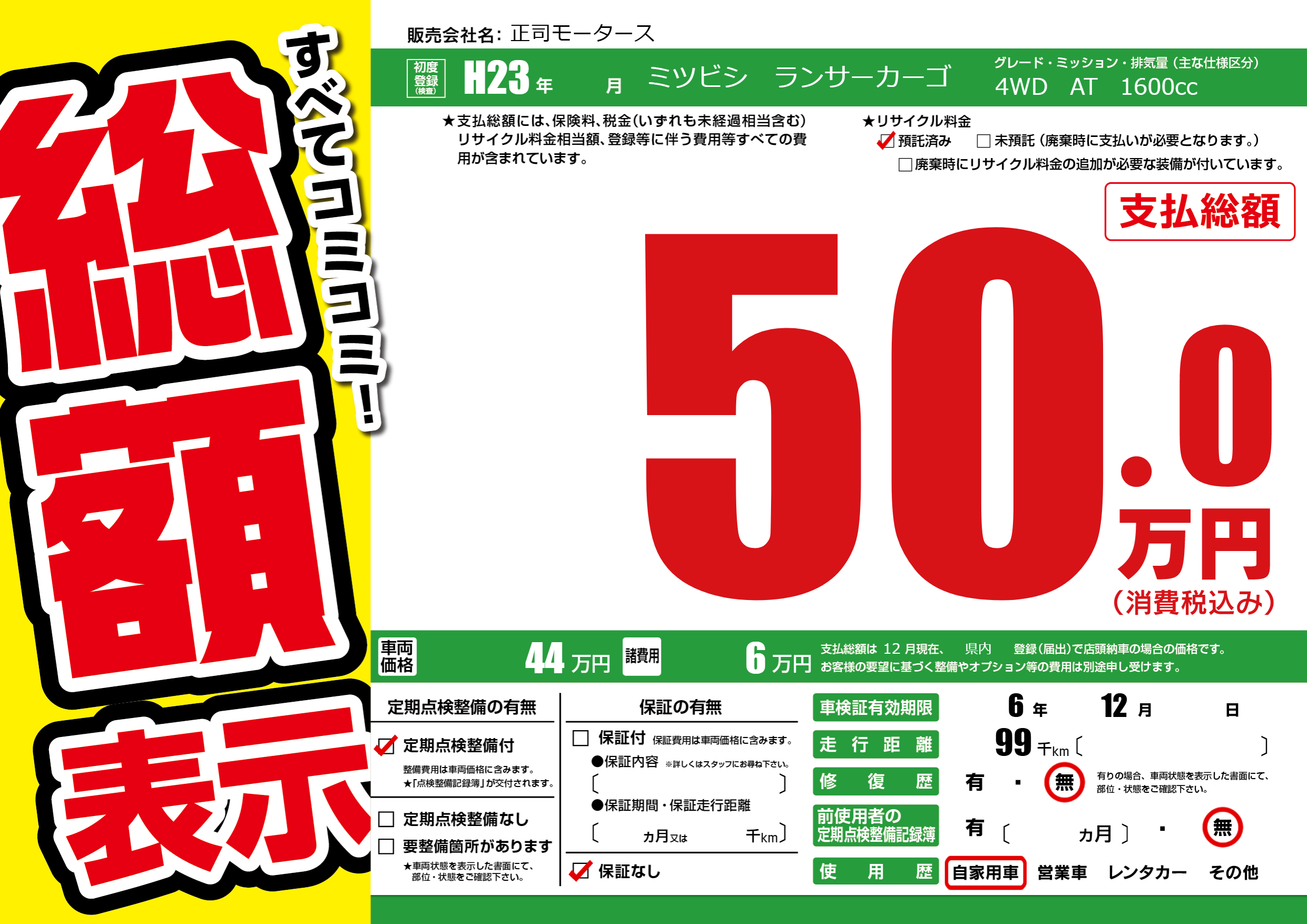 保証なし 保証内容(---) ---ヶ月または( )千kmまで |