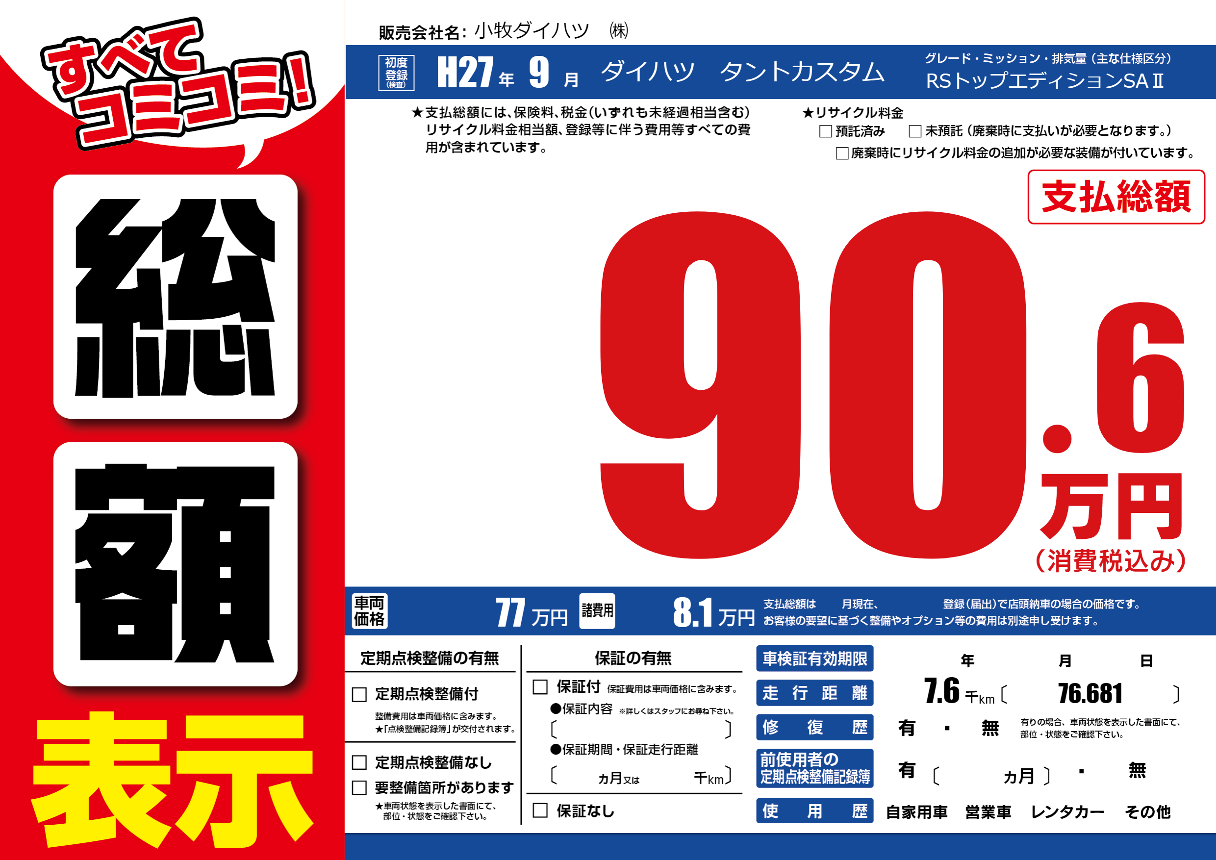 | 車検制限 | - 年 - 月 - 日 | ||