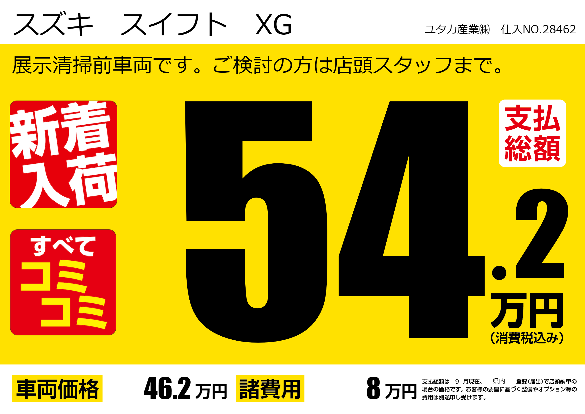 | 車名 | スズキ スイフト XG | グレード ミッション 排気量 |