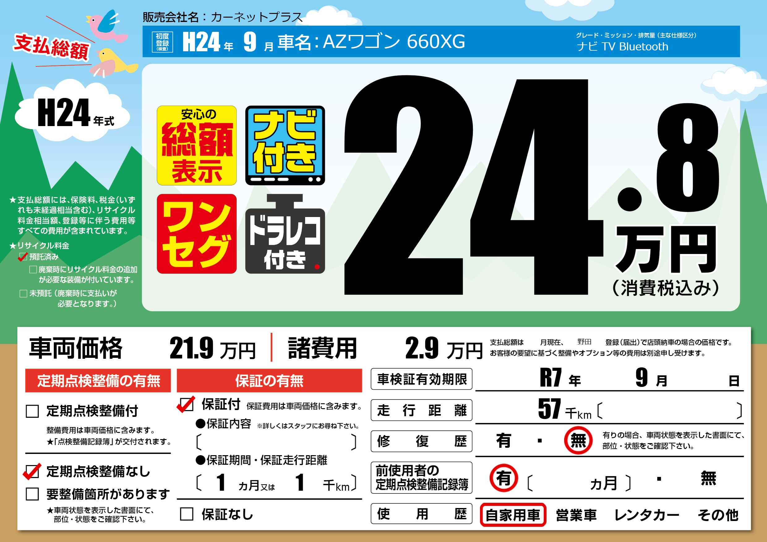 | 走行キロ | 5.7万km | 初年度登録 | H24年9月 |
