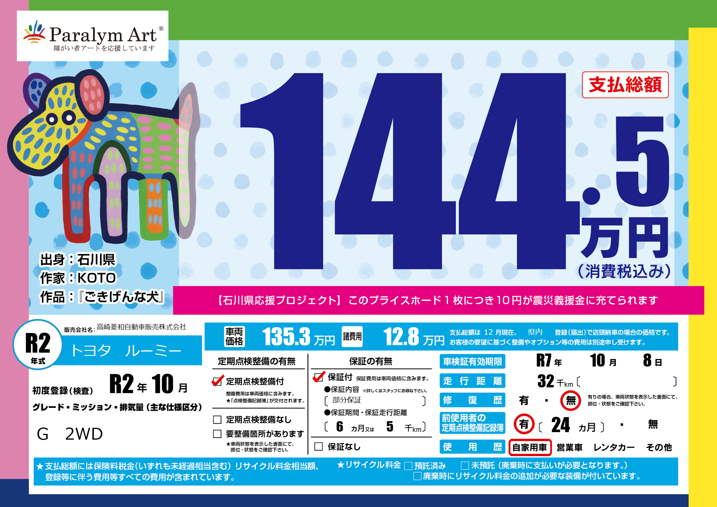 | 車名 | トヨタ ルーミー | グレード ミッション 排気量 |
