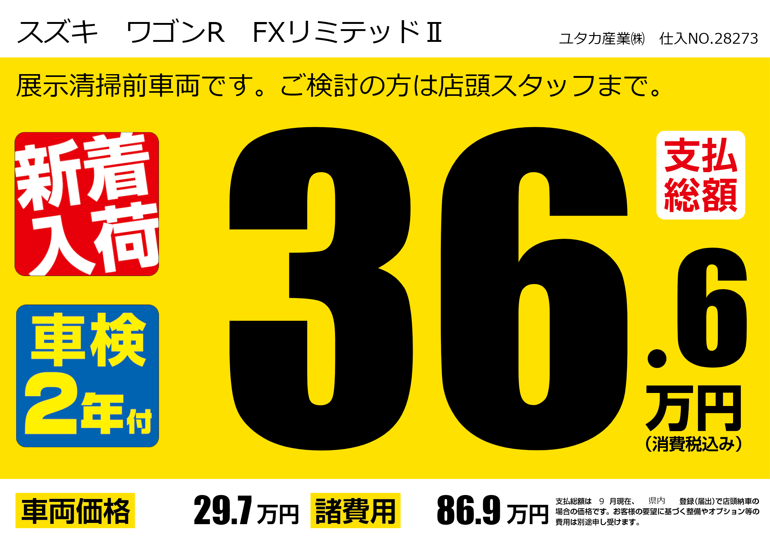 展示清掃前車両です。ご検討の方は店頭スタッフまで。 |