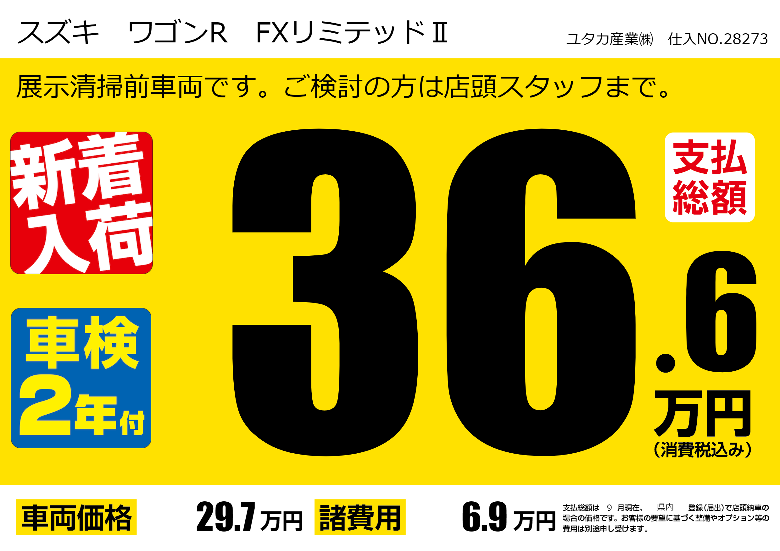 展示清掃前車両です。ご検討の方は店頭スタッフまで。 |